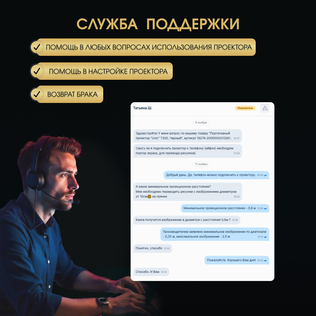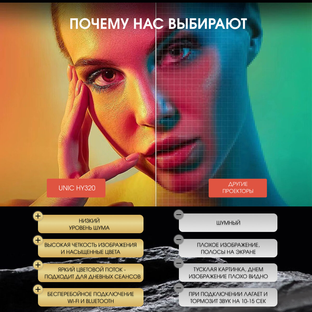 Проектор мультимедийный, домашний проектор UNIC HY320 с Android, видеопроектор, черный интересное: