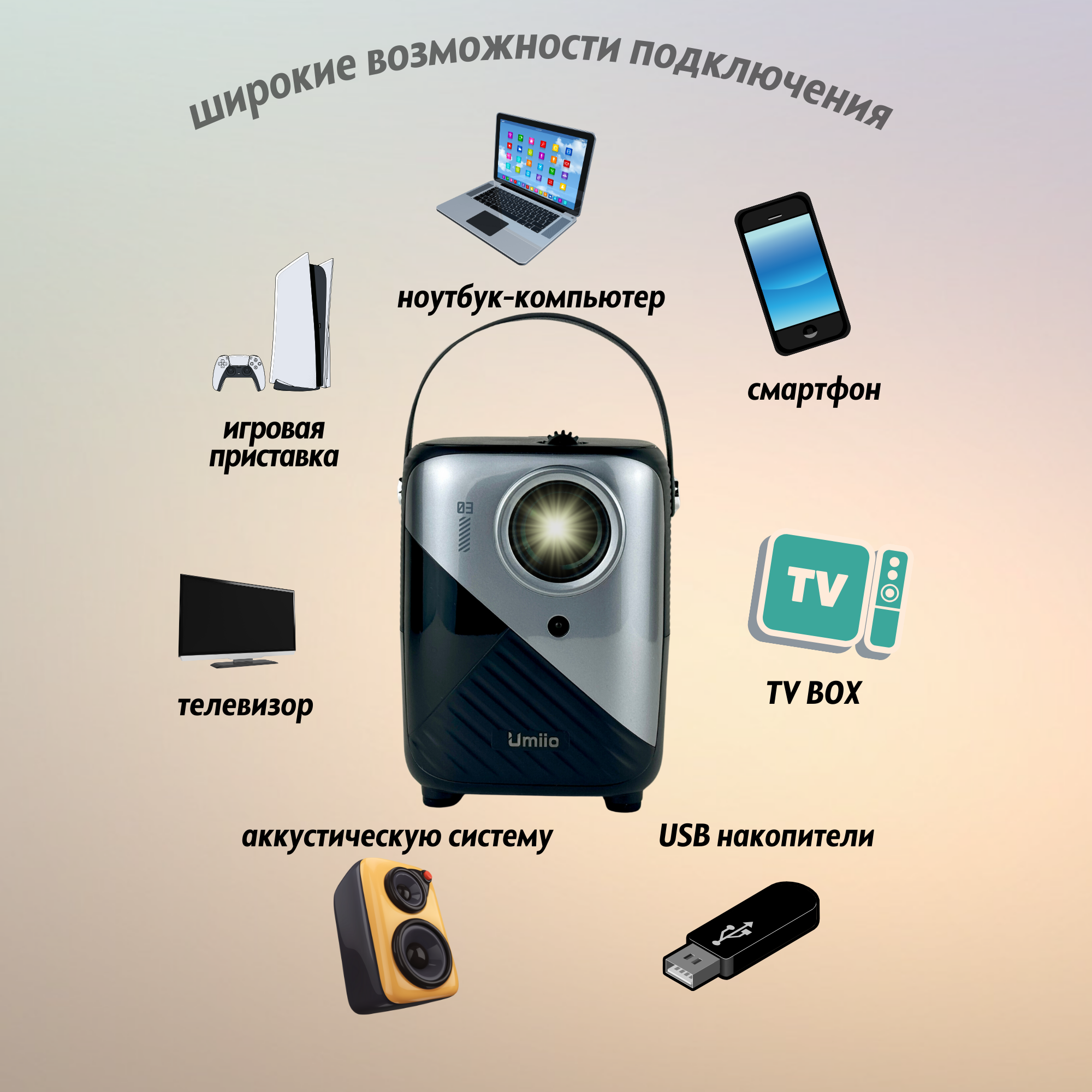 Проектор Umiio "Q3 Pro", с джойстиками, разрешение 1920 x 1080, LED, Bluetooth, Wi-F, черный интересное: