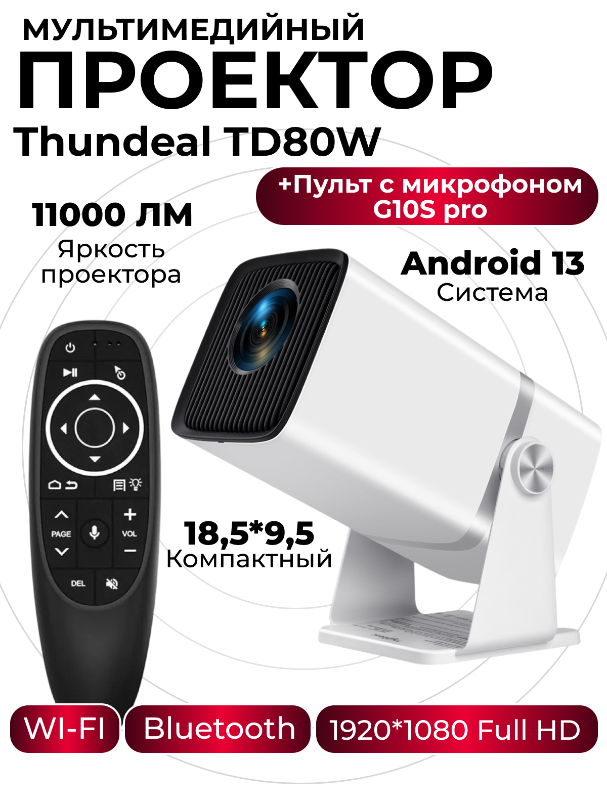 Купить Компактный проектор для дома ThundeaL TD80W+G10S pro аэромышь, портативный компактный мультимедийный проектор с высоким разрешением FullHD