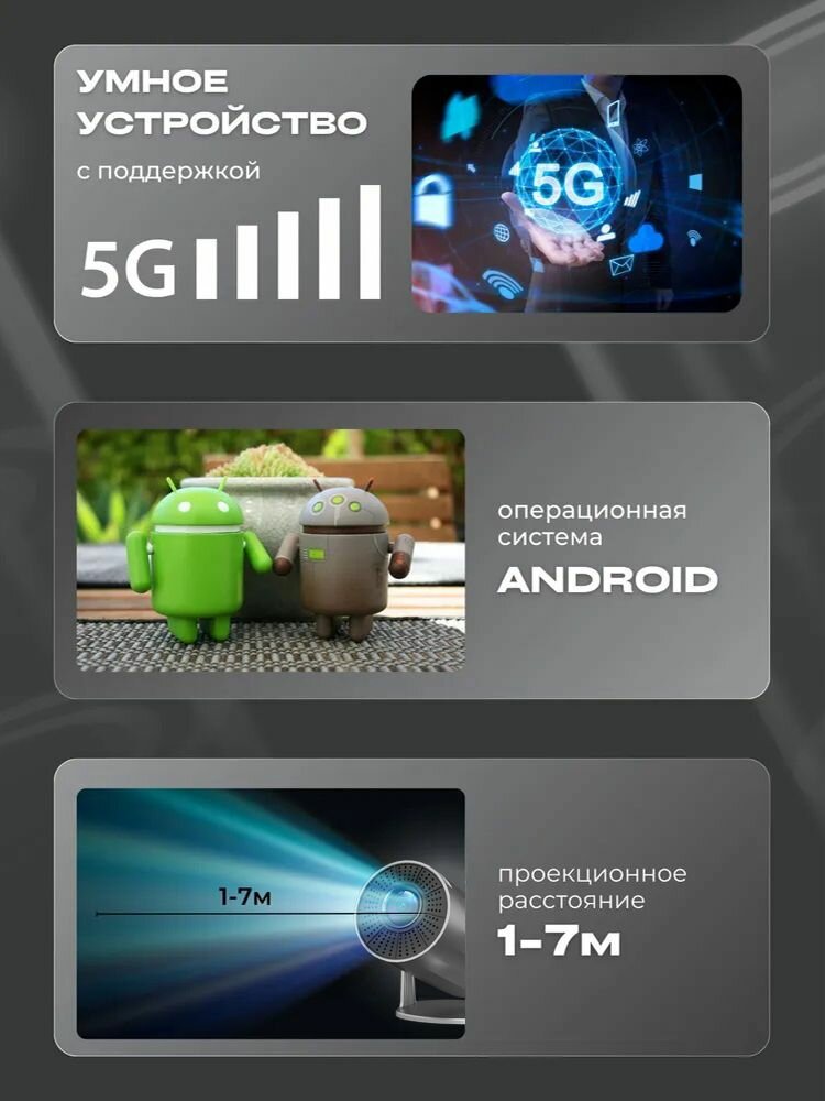 4K проектор для фильмов для компьютера и игр, Android 11, WiFi 6, Bluetooth 5.0, HDMI,5G, поворотным механизмом для просмотра фильмов и презентаций, Xobajin интересное:
