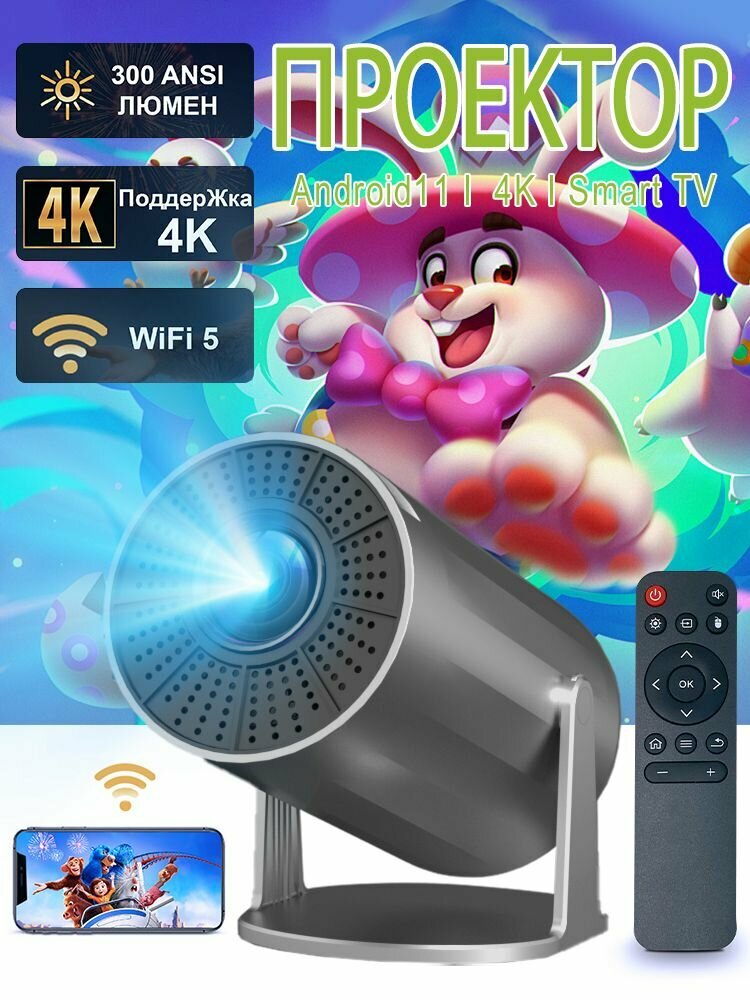 Купить 2025 Новый 4K проектор для кино и игр, Android 11.5G, USB, HDMI, встроенный динамик/черно-серый, Xobajin