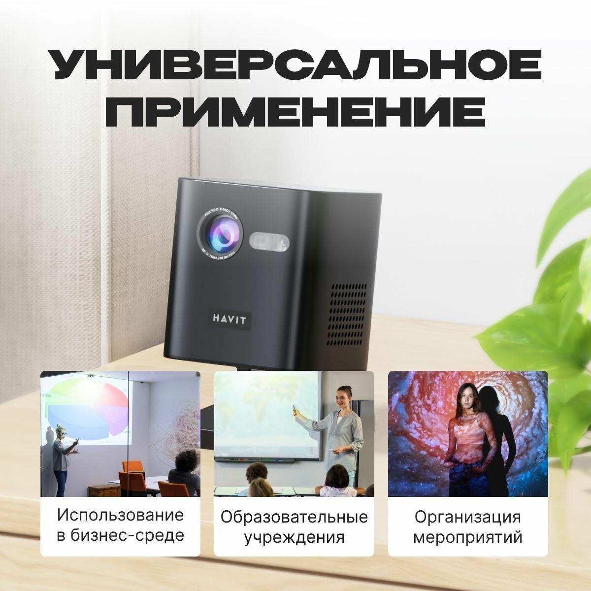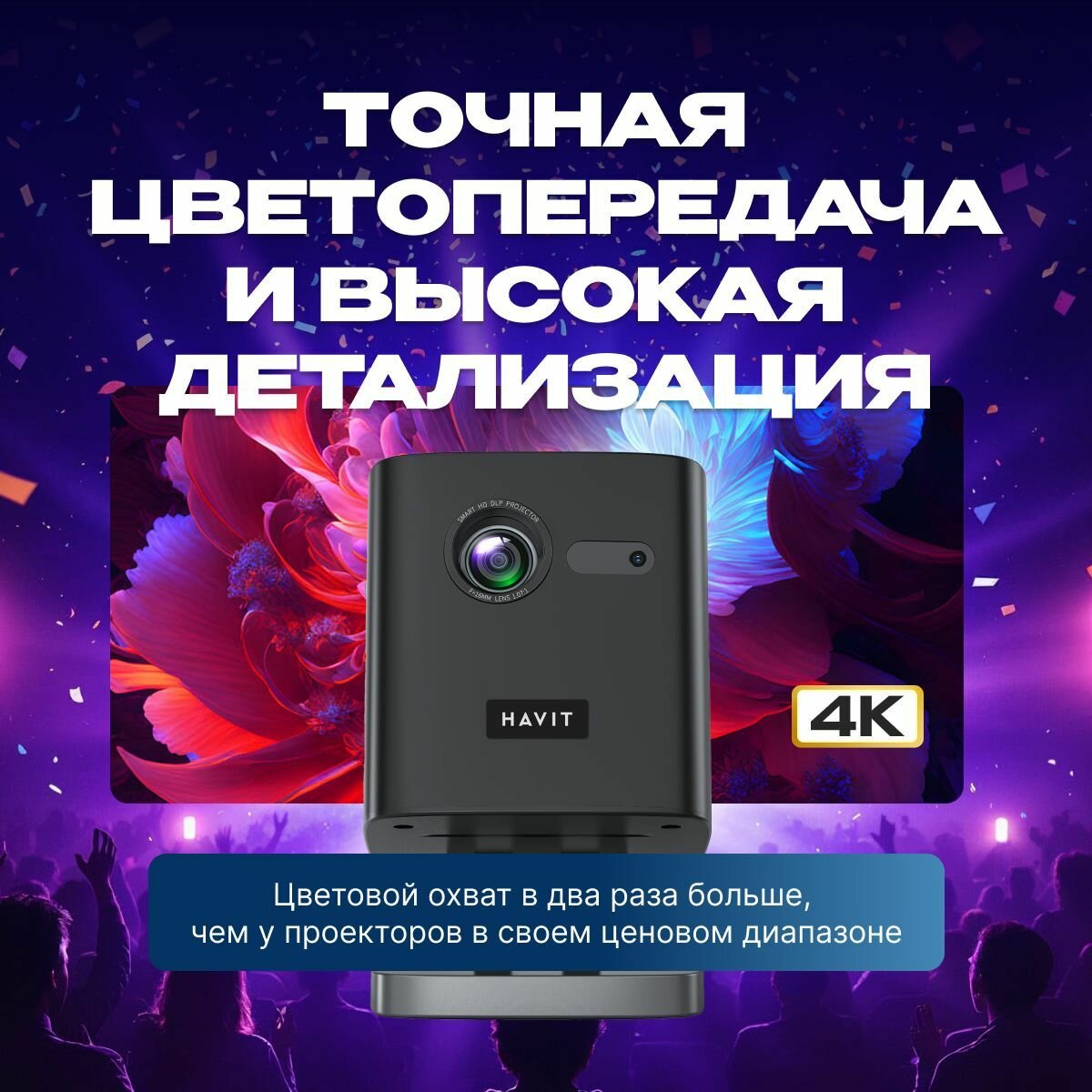 Портативный домашний проектор для просмотра фильмовHavit PJ218 PRO-EU, DLP, Android интересное: