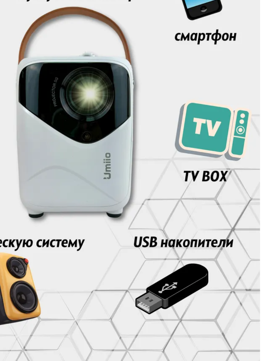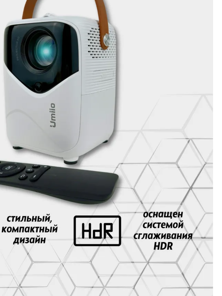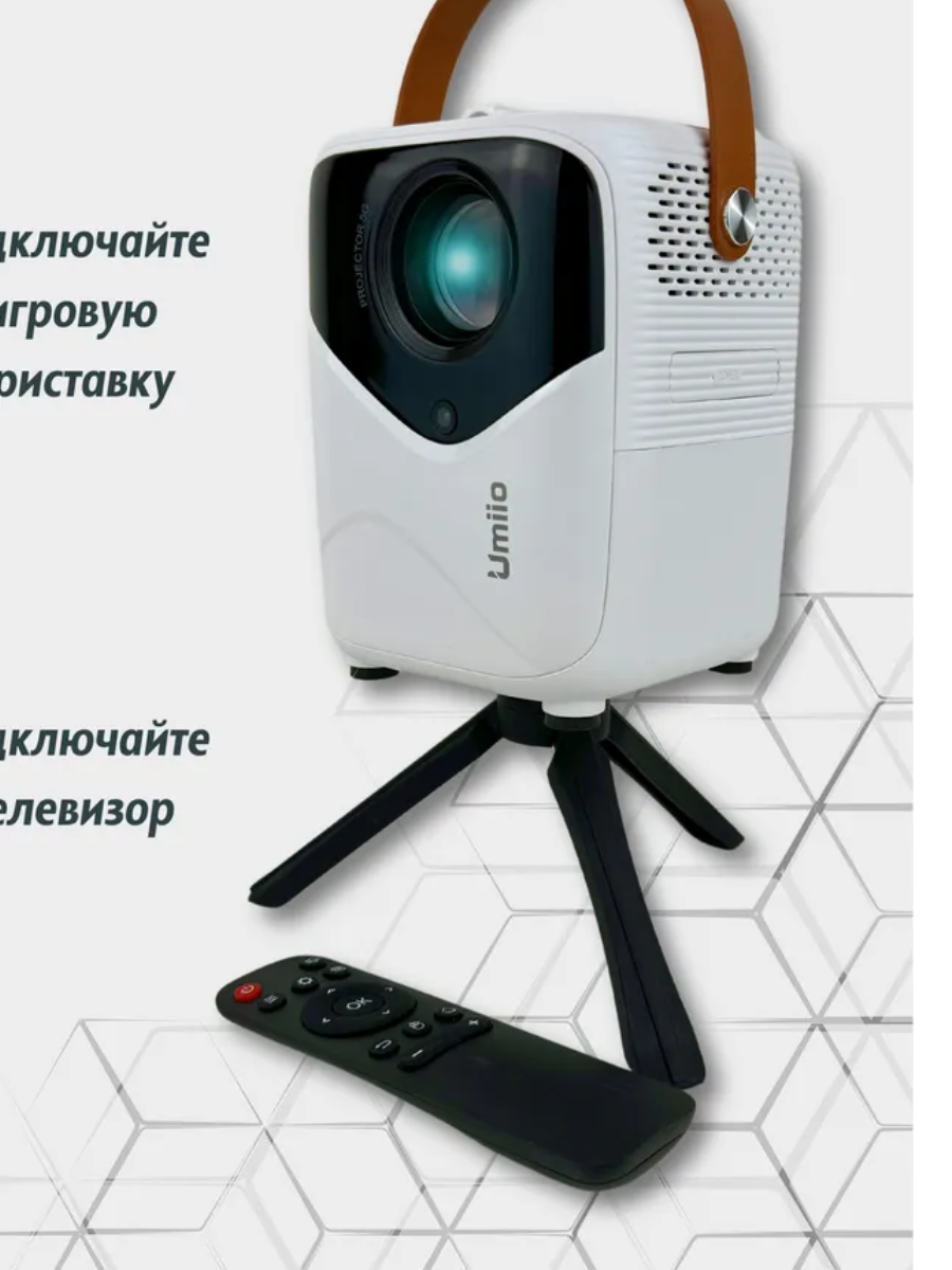 Проектор UMIIO Q1 HDMI для приставки и компьютера Wi-Fi 5G Bluetooth, с штативом, белый