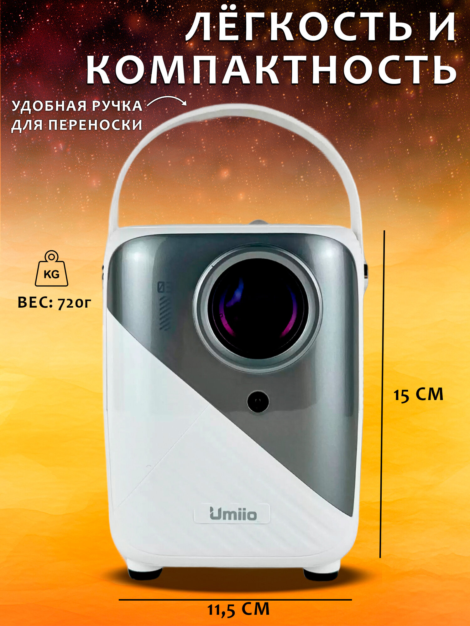 Проектор UMIIO Q1 HDMI для приставки и компьютера Wi-Fi 5G Bluetooth, с штативом, белый