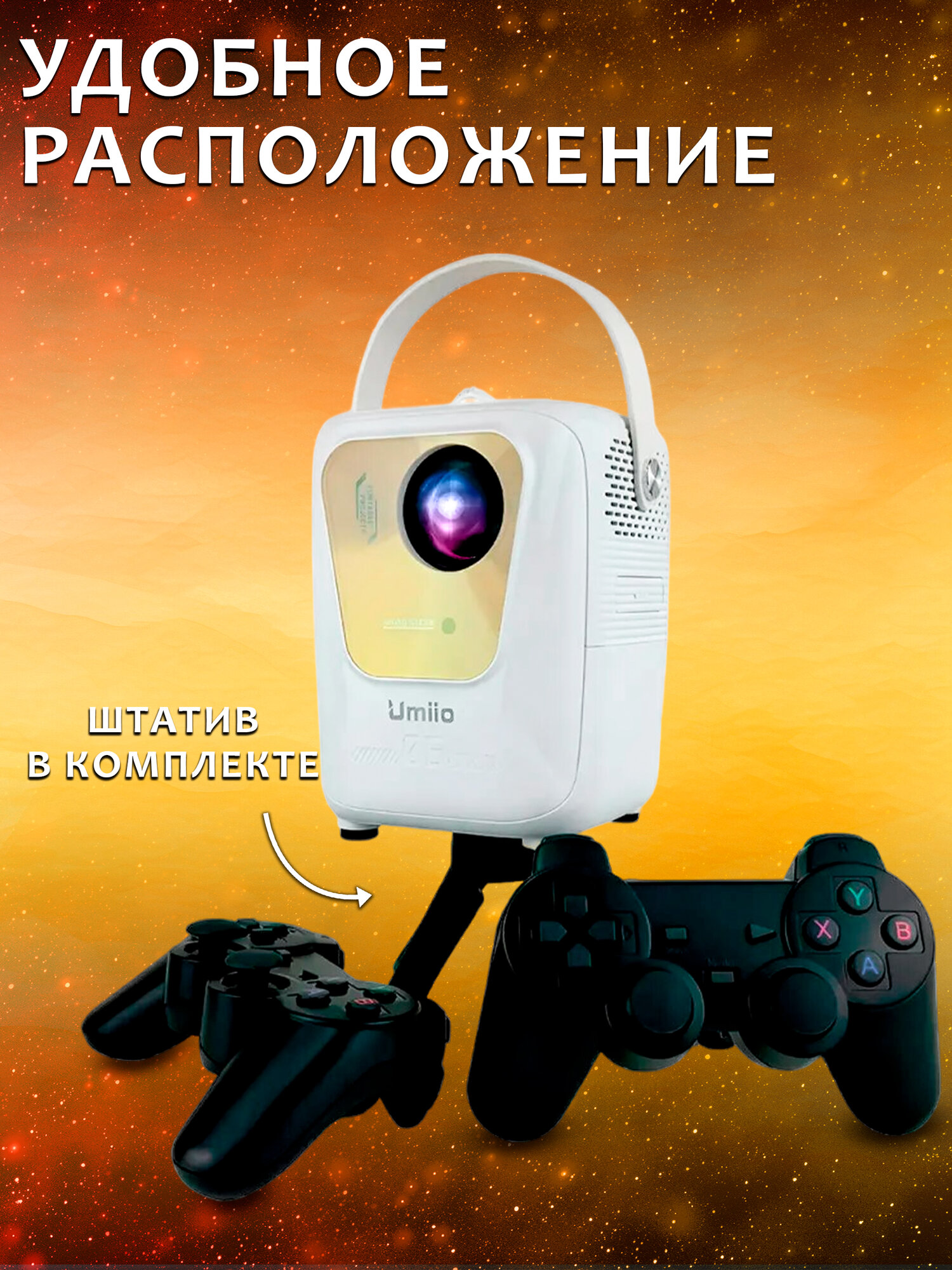 Купить Игровой портативный мини проектор, приставка Umiio Q4, с двумя джойстиками, Full HD, белый