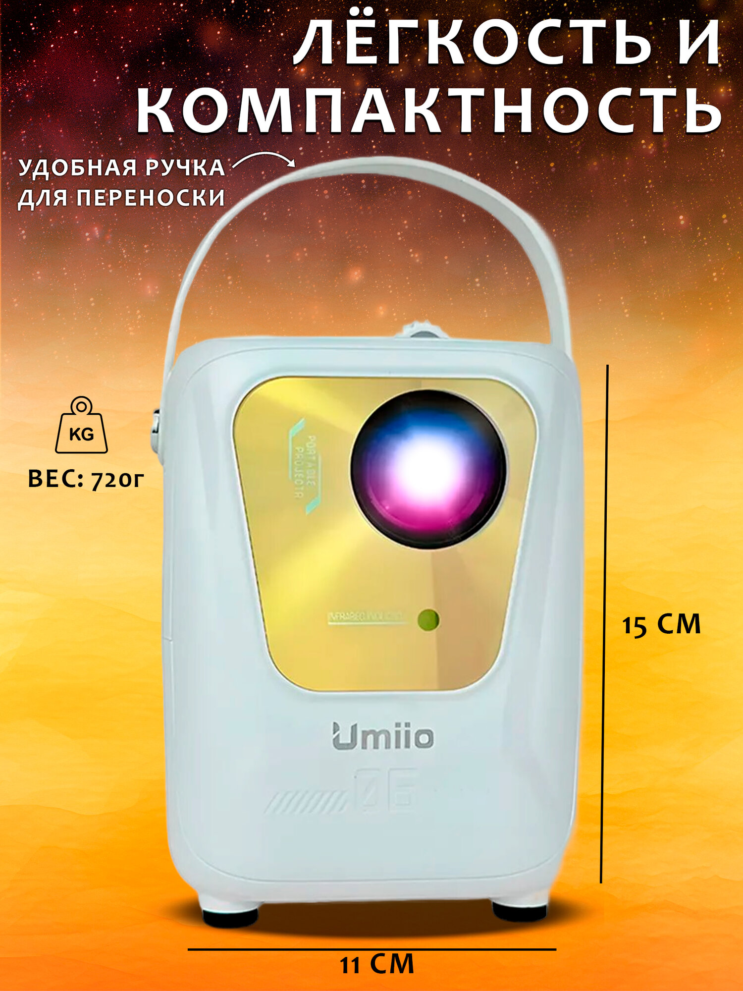 Портативный проектор мини для домашнего кинотеатра Umiio U10 PRO для фильмов в ударопрочном кейсе, белый