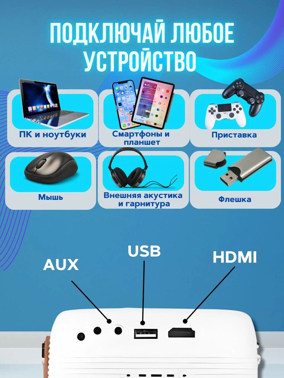 Мини проектор для домашнего кинотеатра, Full HD 1920x1080, Smart TV / Портативный проектор / Проектор для фильмов интересное: