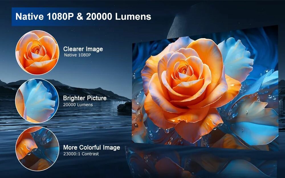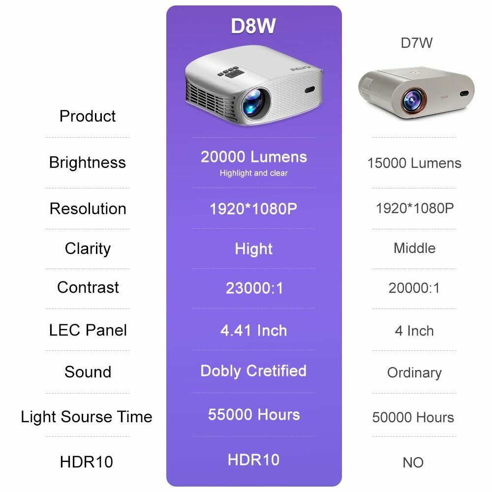 FlixTone D8W 20000 люменов, проектор с технологией Dolby Beam, Full HD 1080P, подходит для домашних кинотеатров, автофокусировка. интересное:
