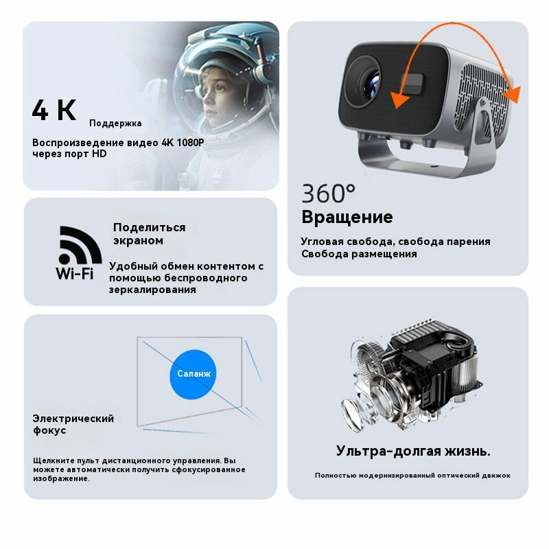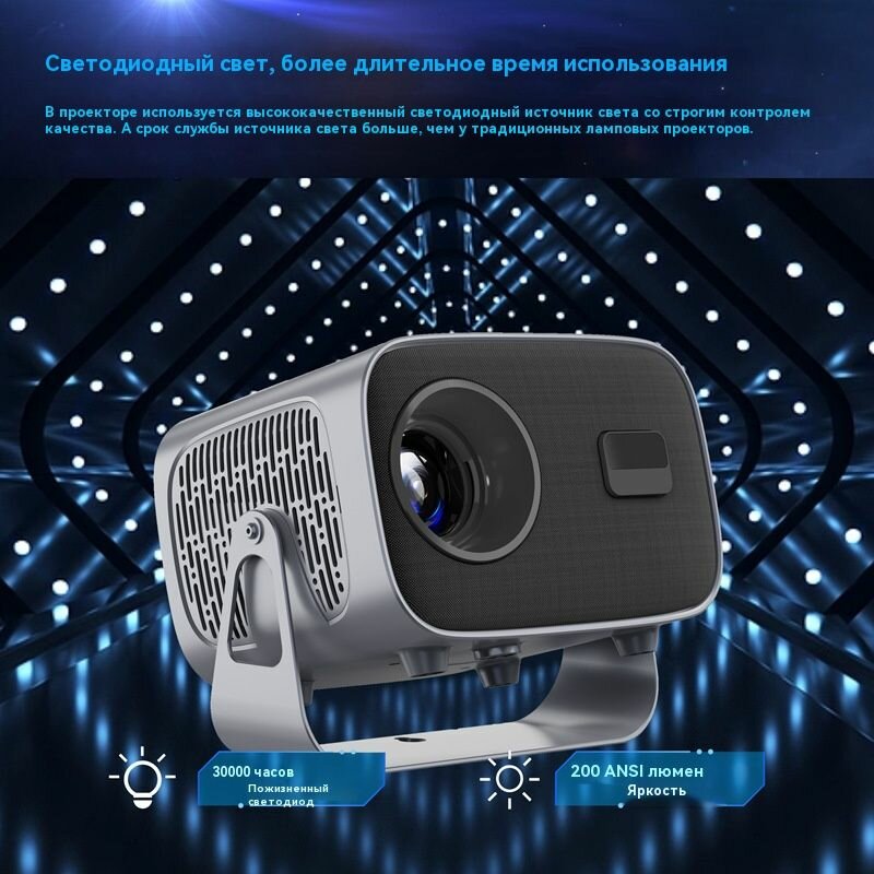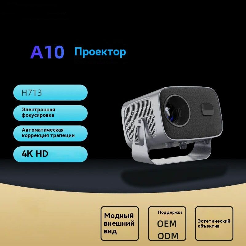 Проектор Интеллектуальный кинопроектор 5g A10, разрешение 4K ultra HD, встроенные динамики, Wi-Fi, 1LCD, светло-серый интересное: