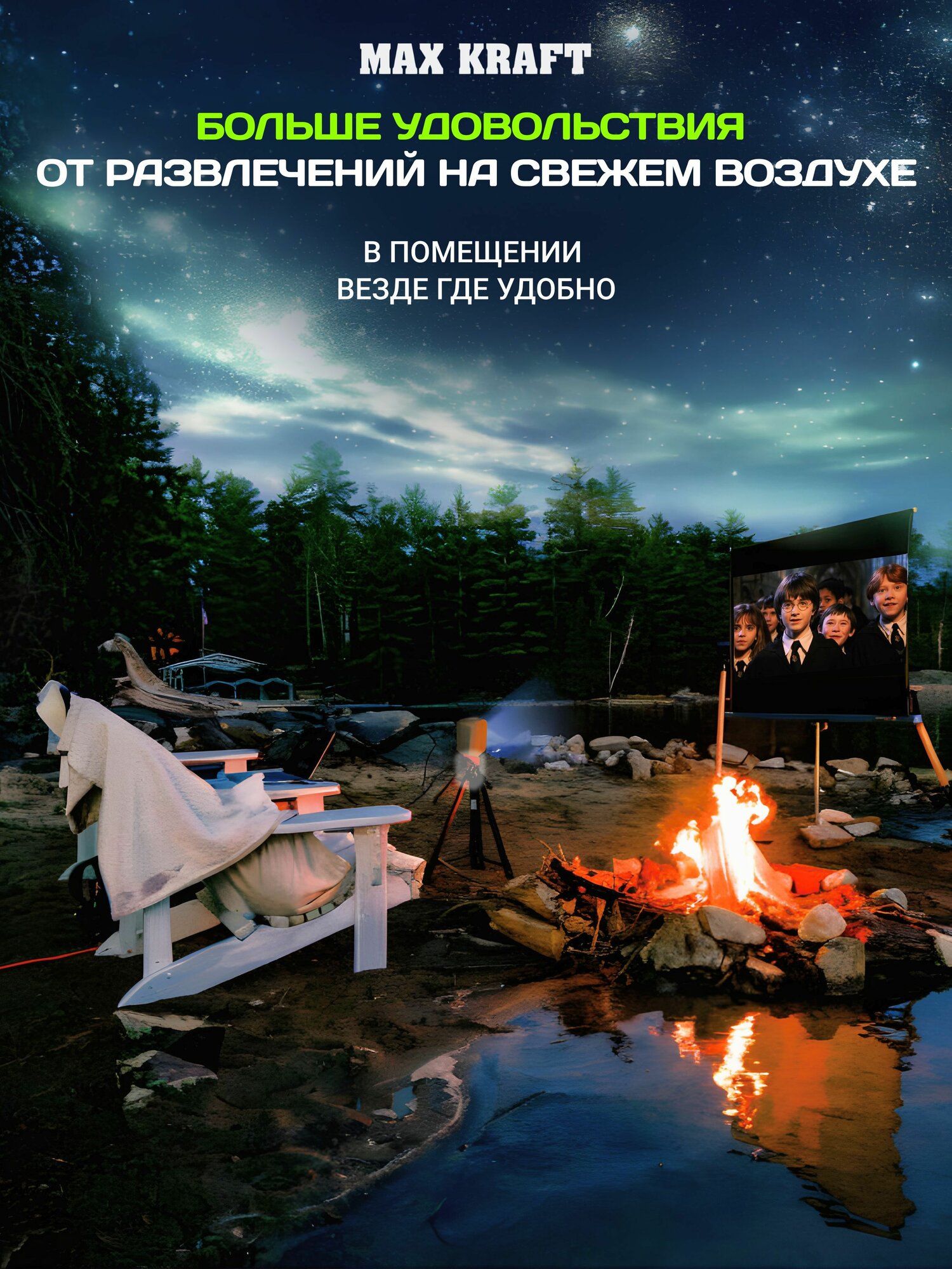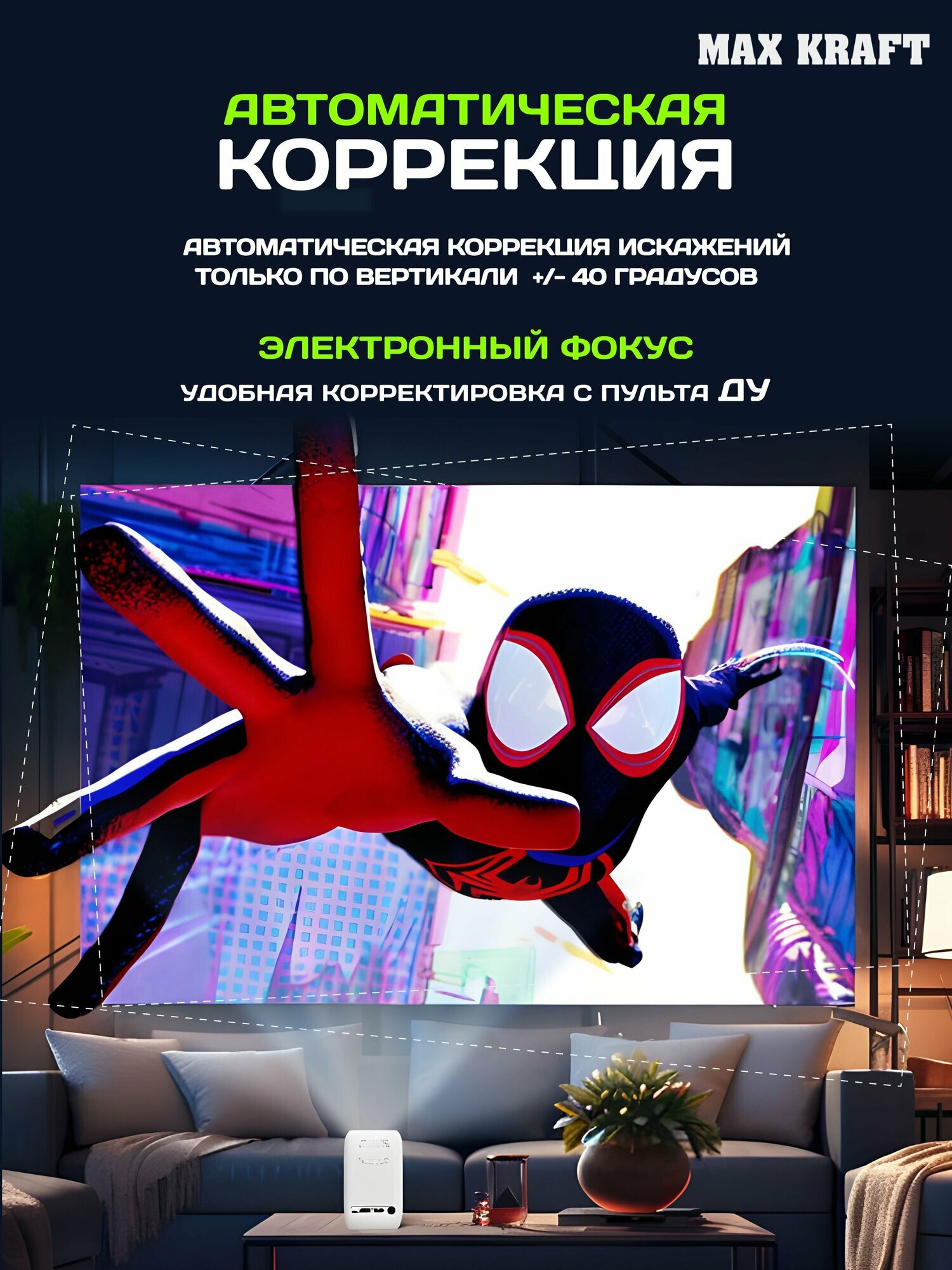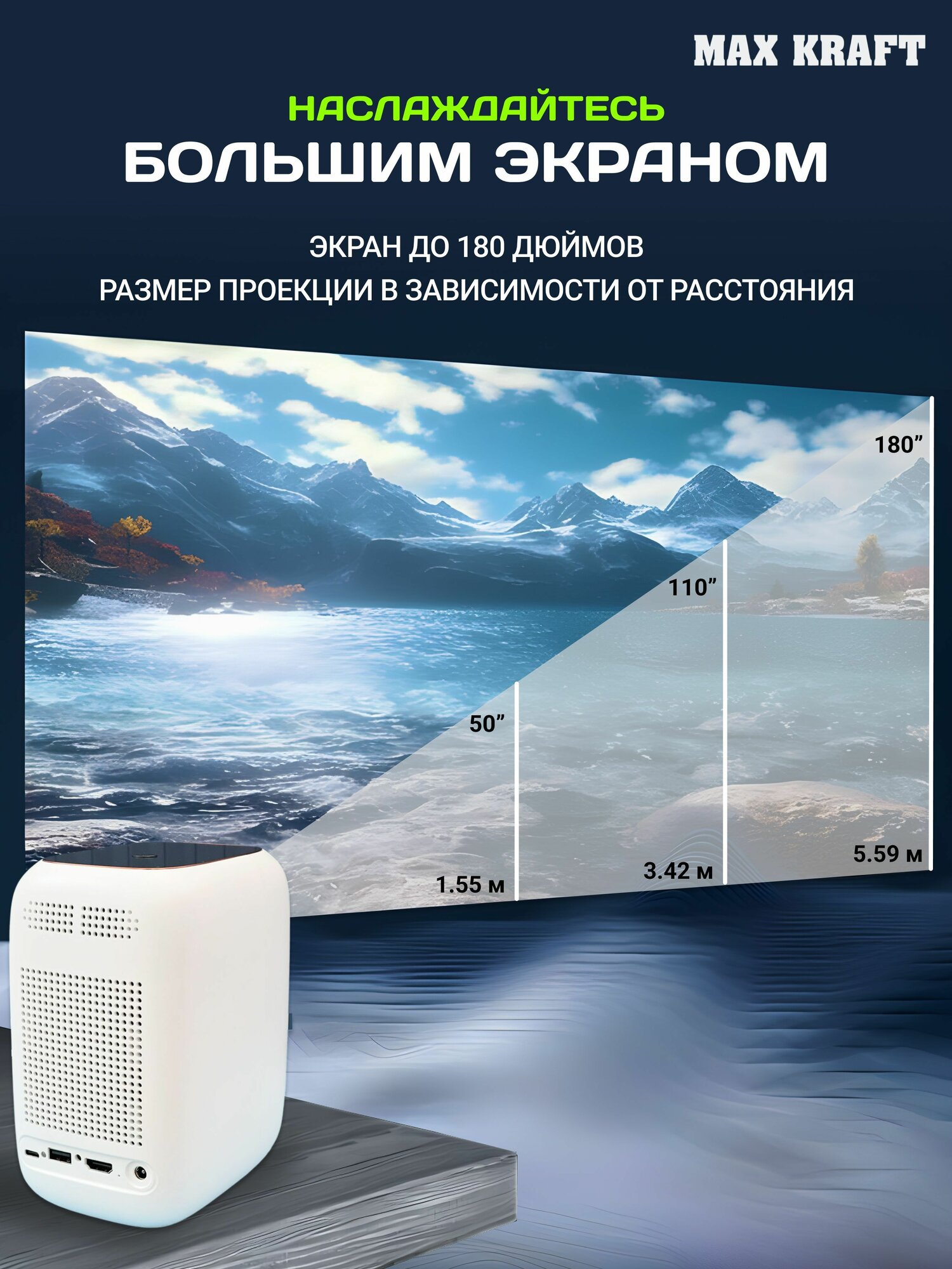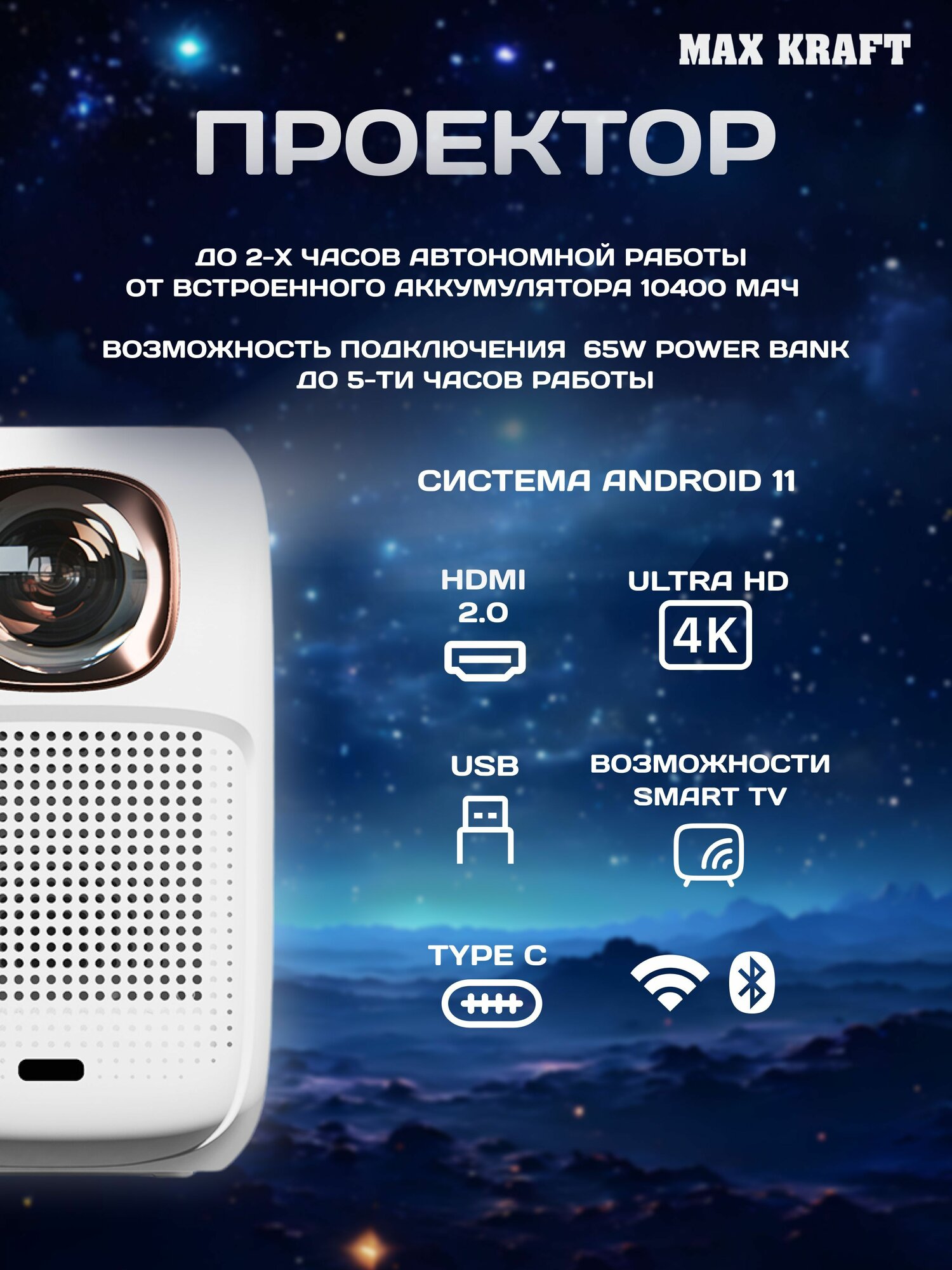 Купить Проектор Max Kraft "LCD", Android, с аккумулятором, до 2 ч автономной работы