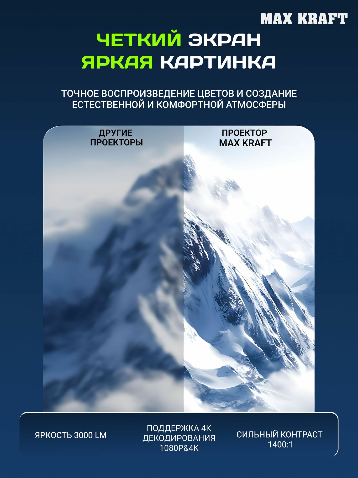 Проектор Max Kraft "LCD", Android, с аккумулятором, до 2 ч автономной работы интересное: