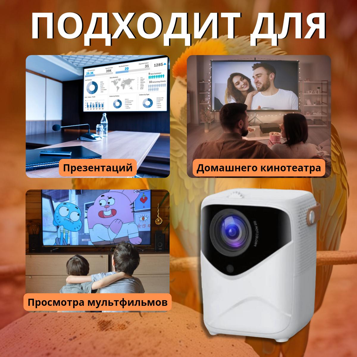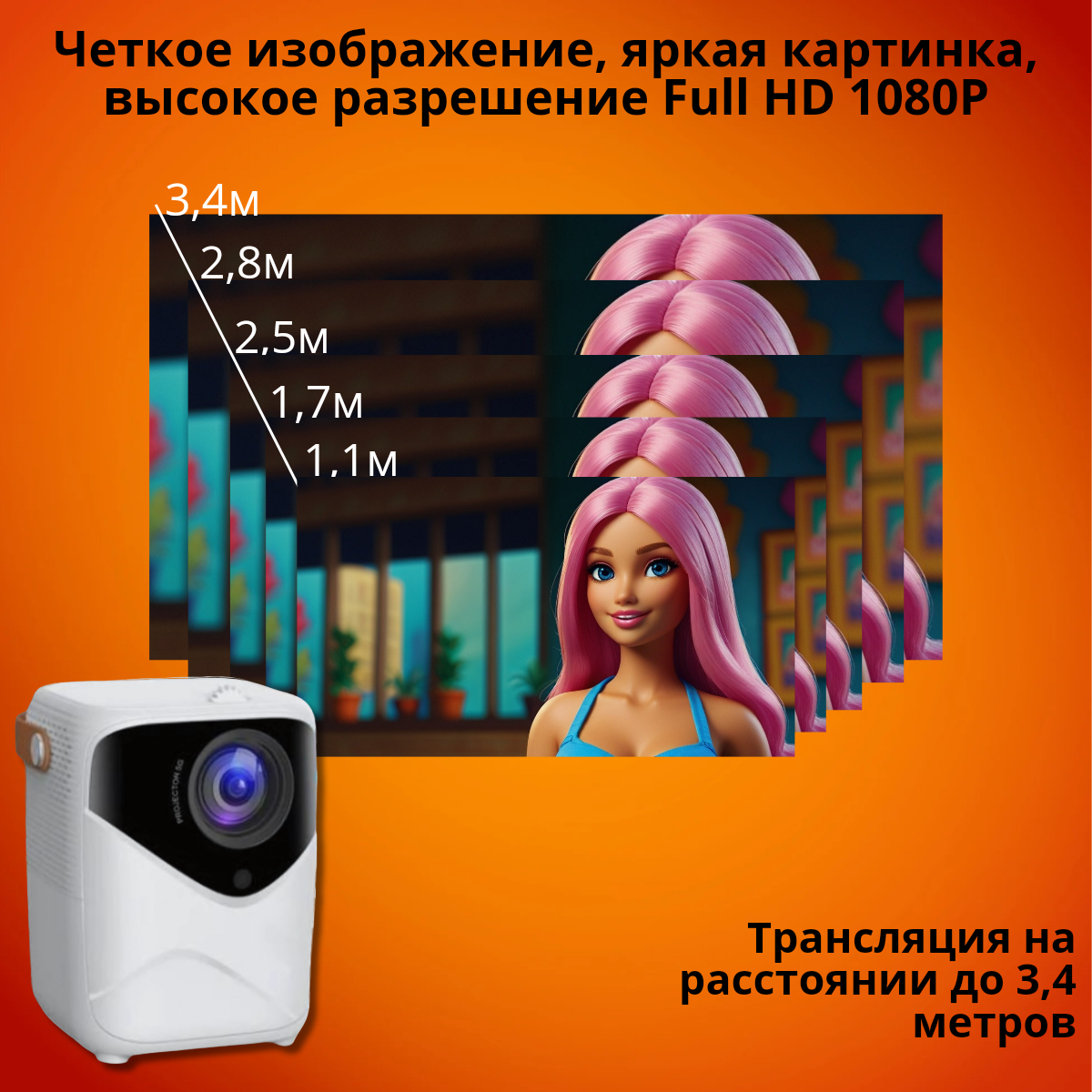 Проектор для домашнего кинотеатра, портативный проектор для фильмов Full HD интересное: