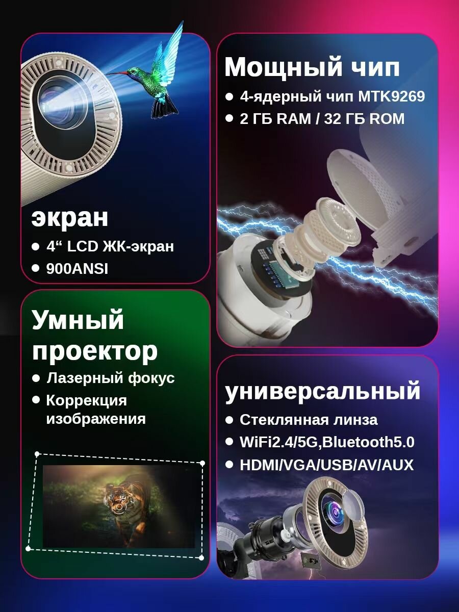 Проектор для фильмов Duosence D3 , проектор 4к домашний, 800ANSI, Автофокусировка, 2025 новый интересное: