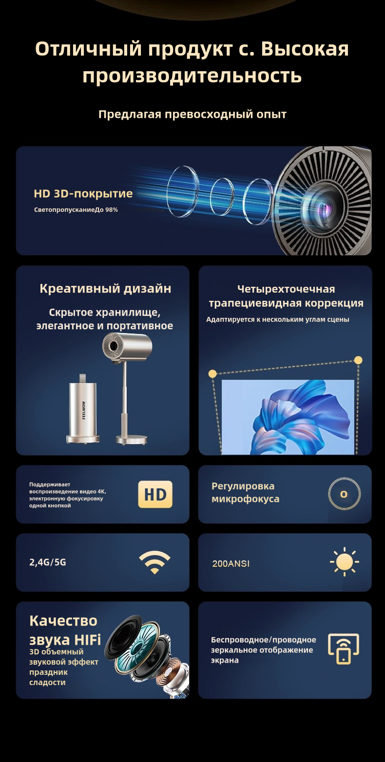 Проектор домашний , портативный, мультимедийный, FEEL WOW TS-3 Скрытый подъемный проектор интересное: