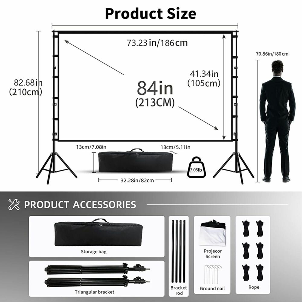 VEIDADZ 84" Белый Двойной штатив экран для проектора интересное:
