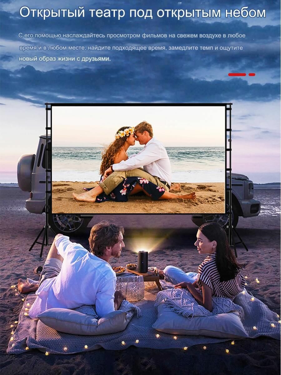 VEIDADZ 84" экран для проектора с двойной подставкой на черном фоне интересное: