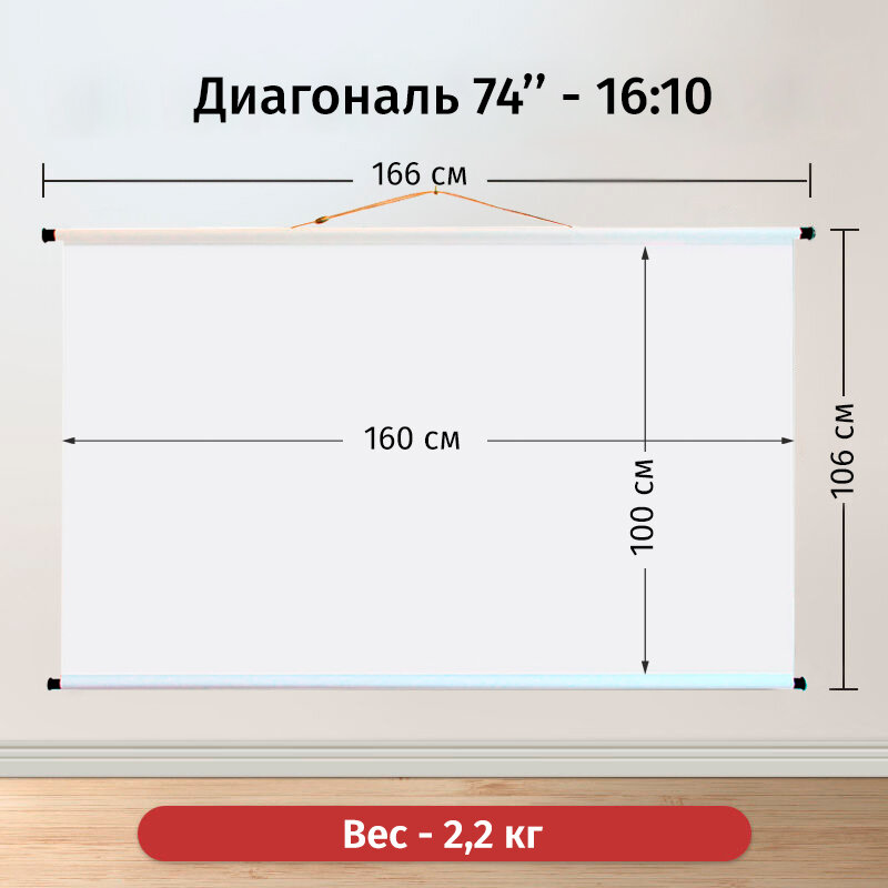 Купить Экран для проектора Лама Блэк 160x100 см, формат 16:10, диагональ 74"