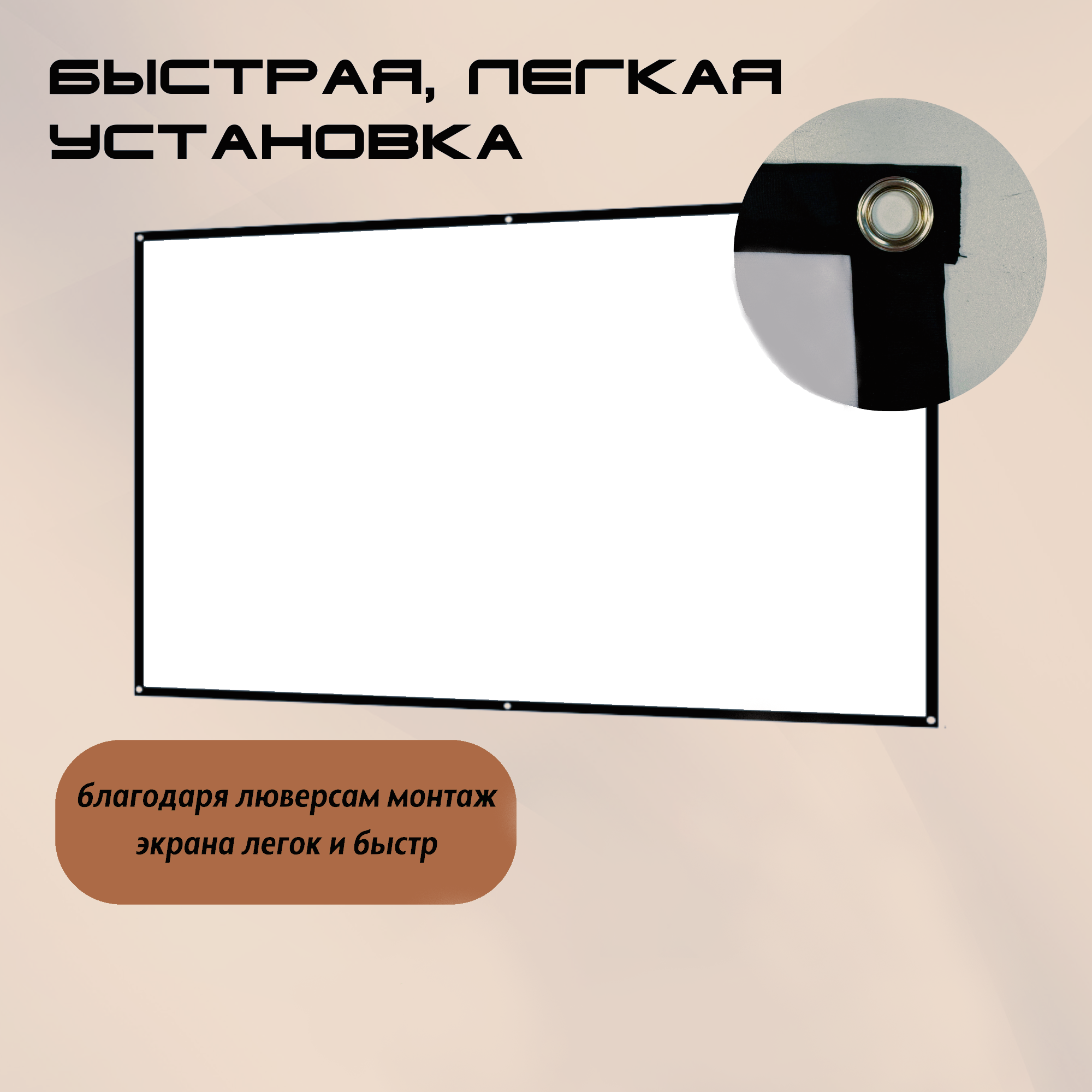 Купить Экран для проектора 100 дюймов 16:9 (утолщенная версия), крепления для экрана (крючки, веревка)