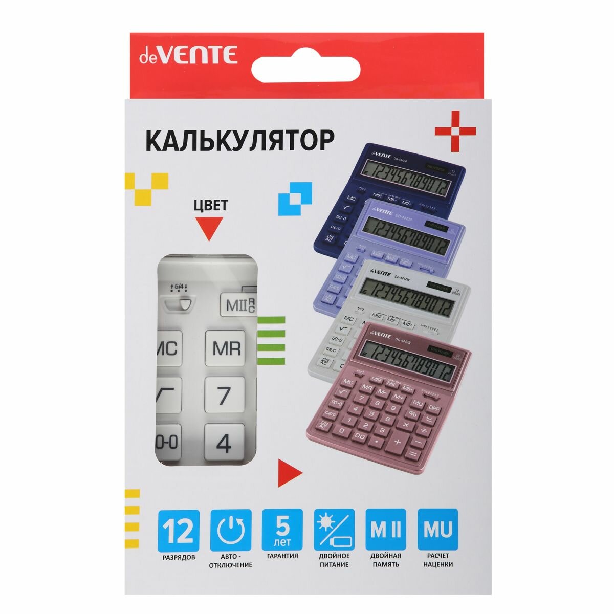 Купить Калькулятор настольный "deVENTE" DD-4442W, 155x204x33 мм, 12 разрядный, двойное питание, 4031320