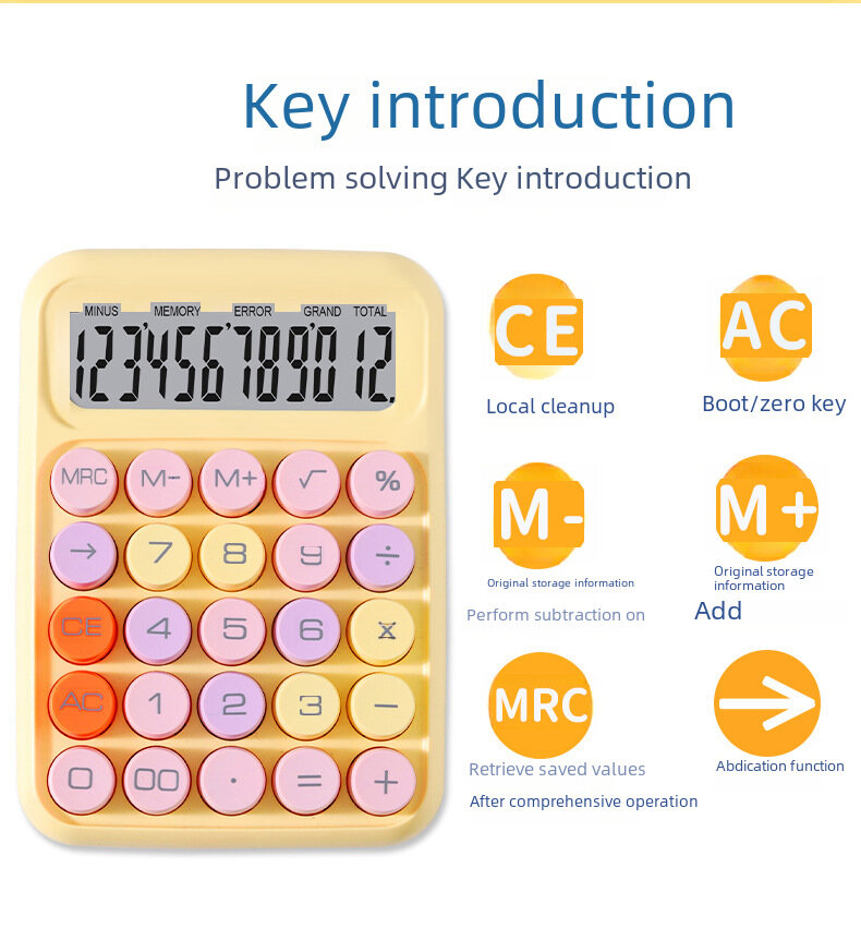 Калькулятор RZ-817BMAX, 12 разрядов, механическая клавиатура, портативный, лимонно-желтый