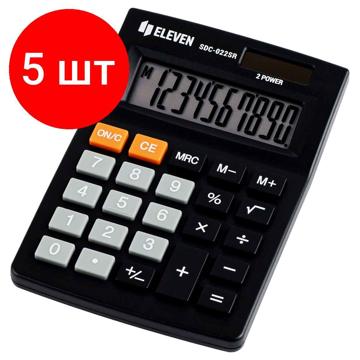 Комплект 5 шт, Калькулятор настольный Eleven SDC-022SR, 10 разрядов, двойное питание, 88*127*23мм, черный интересное: