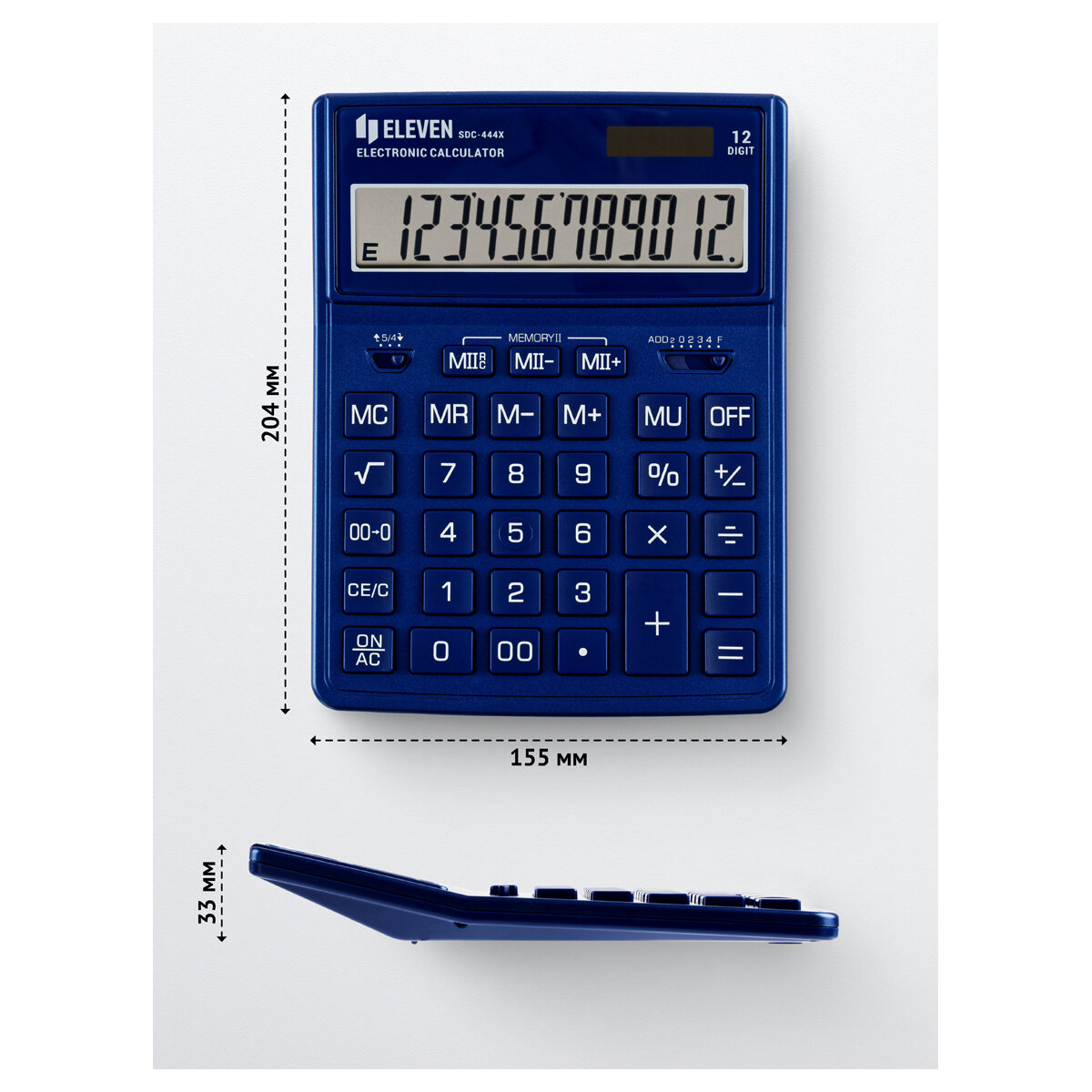 Комплект 2 шт, Калькулятор настольный Eleven SDC-444X-NV, 12 разрядов, двойное питание, 155*204*33мм, темно-синий интересное:
