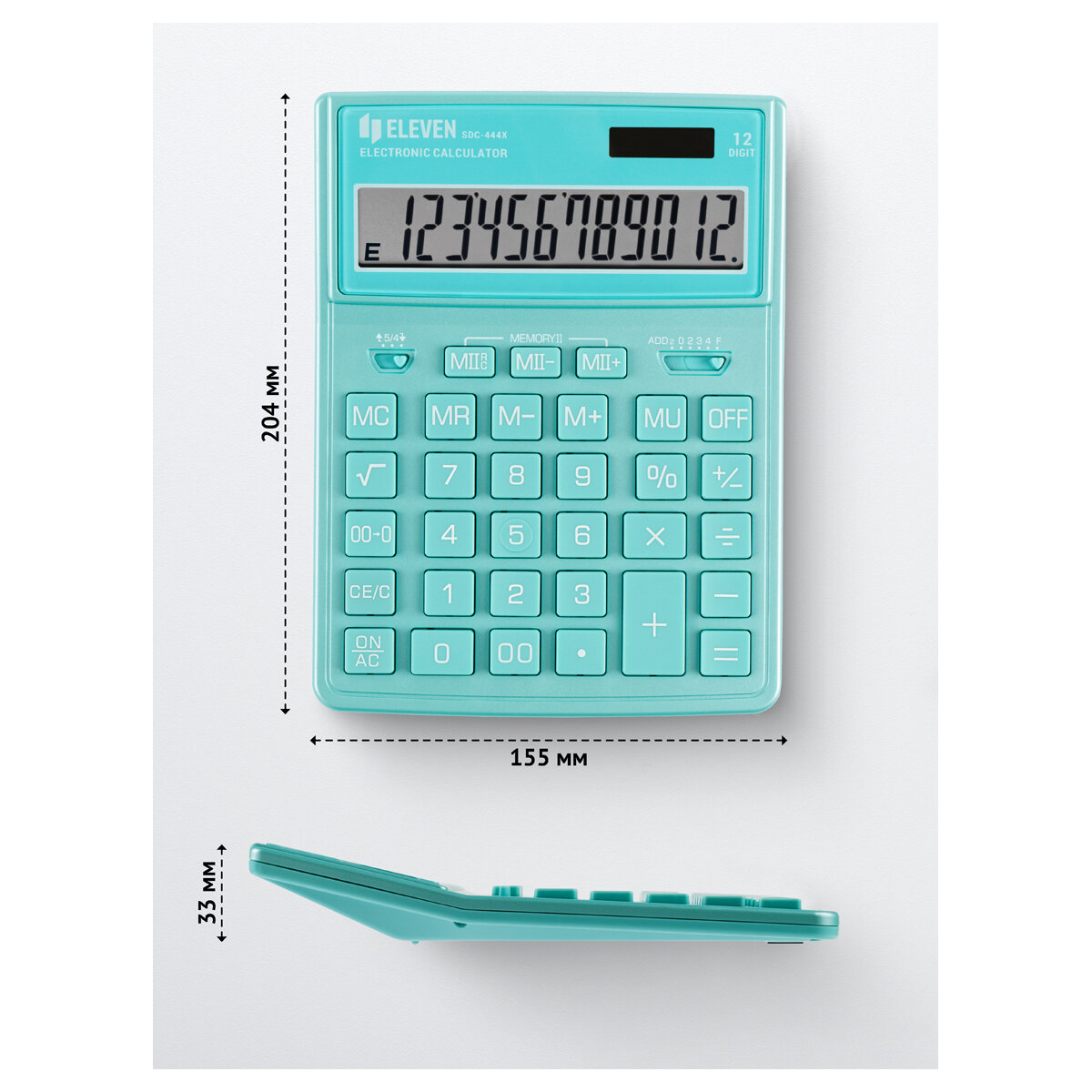 Комплект 2 шт, Калькулятор настольный Eleven SDC-444X-GN, 12 разрядов, двойное питание, 155*204*33мм, бирюзовый интересное:
