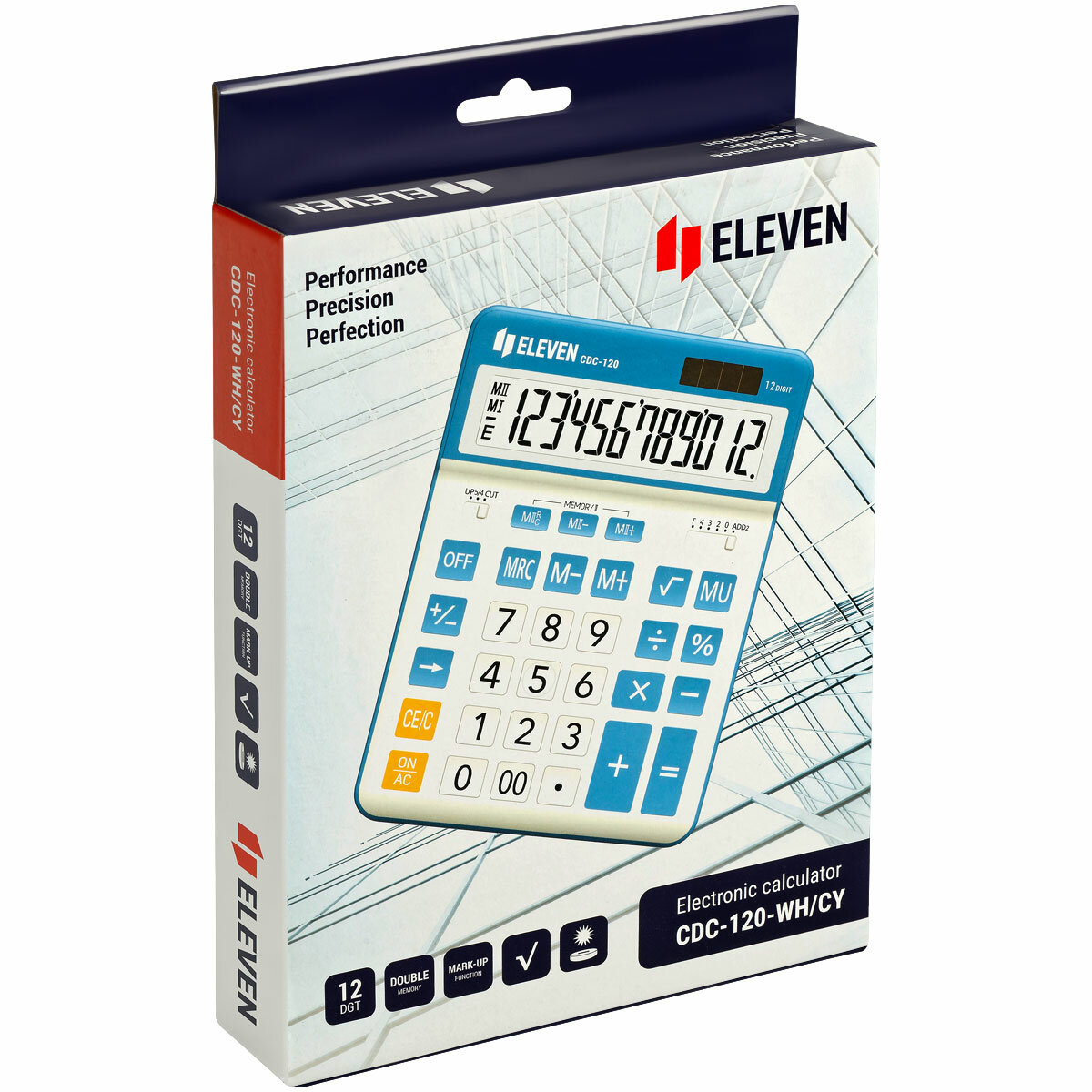 Купить Комплект 3 шт, Калькулятор настольный Eleven CDC-120-WH/CY, 12 разрядов, двойное питание, 155*206*38мм, белый/синий
