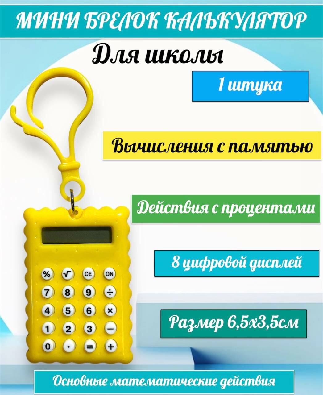 Мини калькулятор брелок для школы желтый интересное: