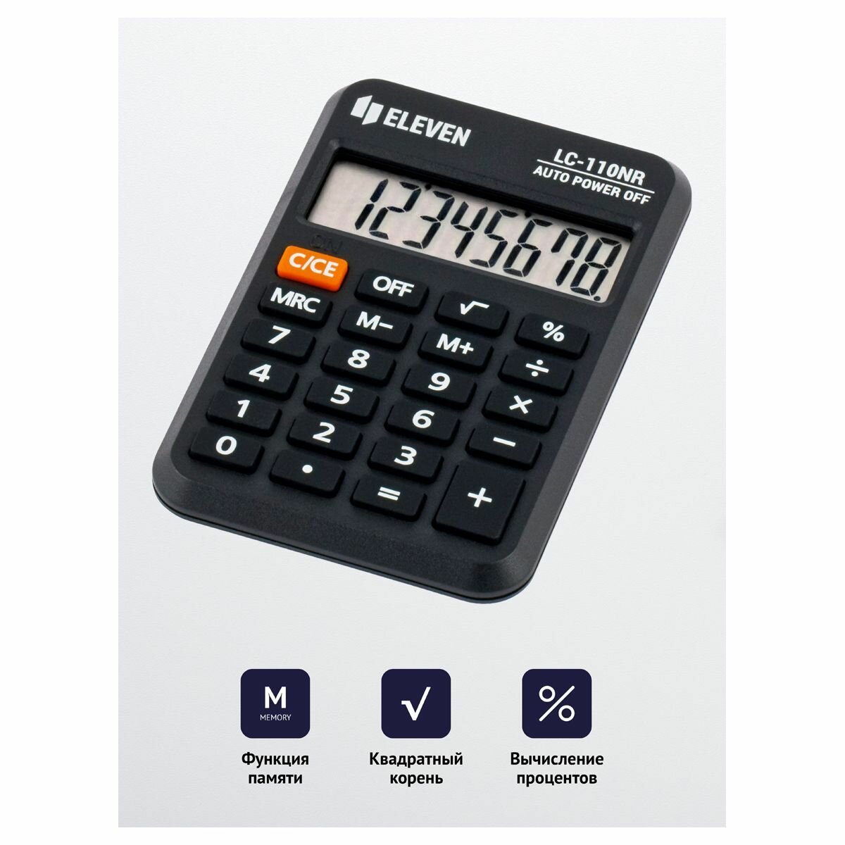 Калькулятор карманный Eleven 8 разрядов, 88*58*11мм, питание от батареи, черный интересное: