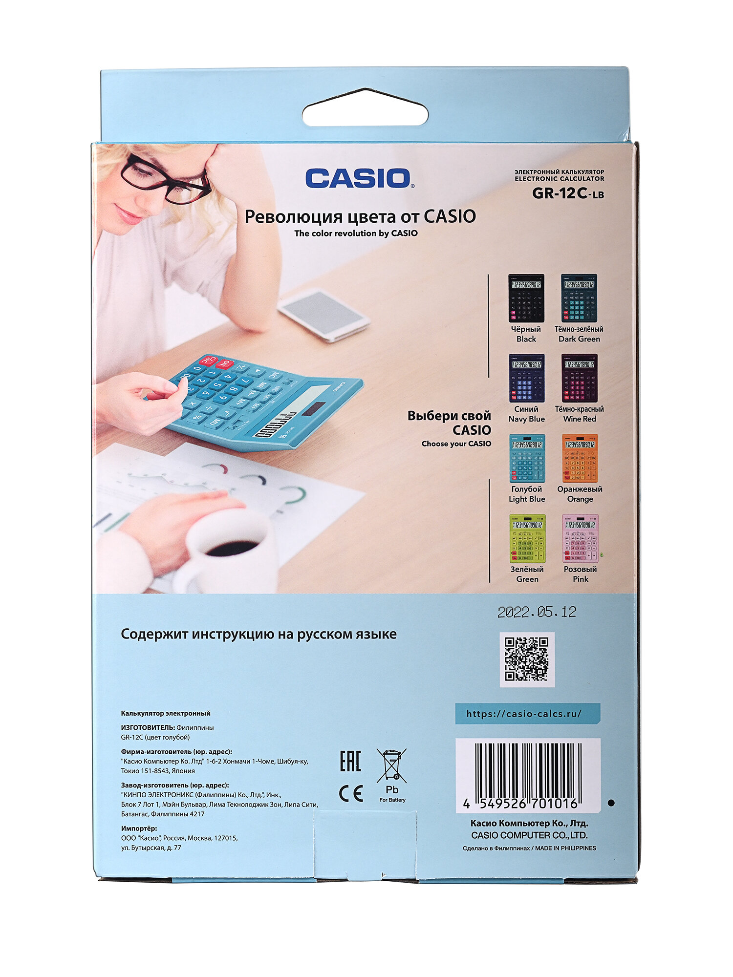 Калькулятор CASIO GR-12, голубой, 12 разрядов, бухгалтерский интересное: