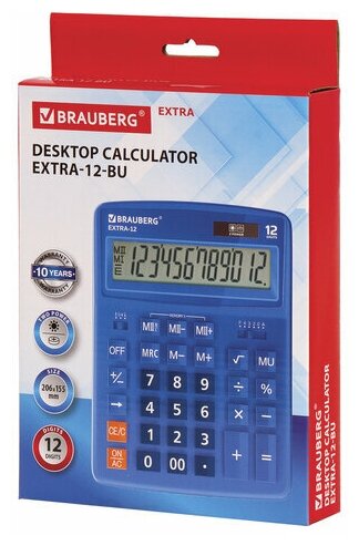 Комплект 5 шт, Калькулятор настольный BRAUBERG EXTRA-12-BU (206x155 мм), 12 разрядов, двойное питание, синий, 250482 интересное: