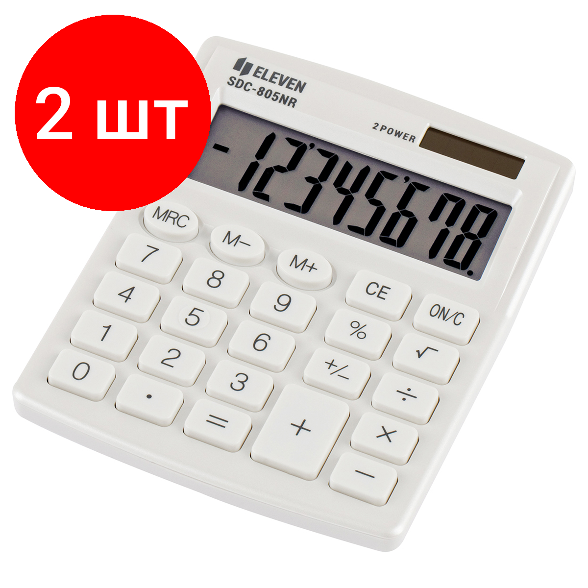 Купить Комплект 2 шт, Калькулятор настольный Eleven SDC-805NR-WH, 8 разр, двойное питание, 127*105*21мм, белый
