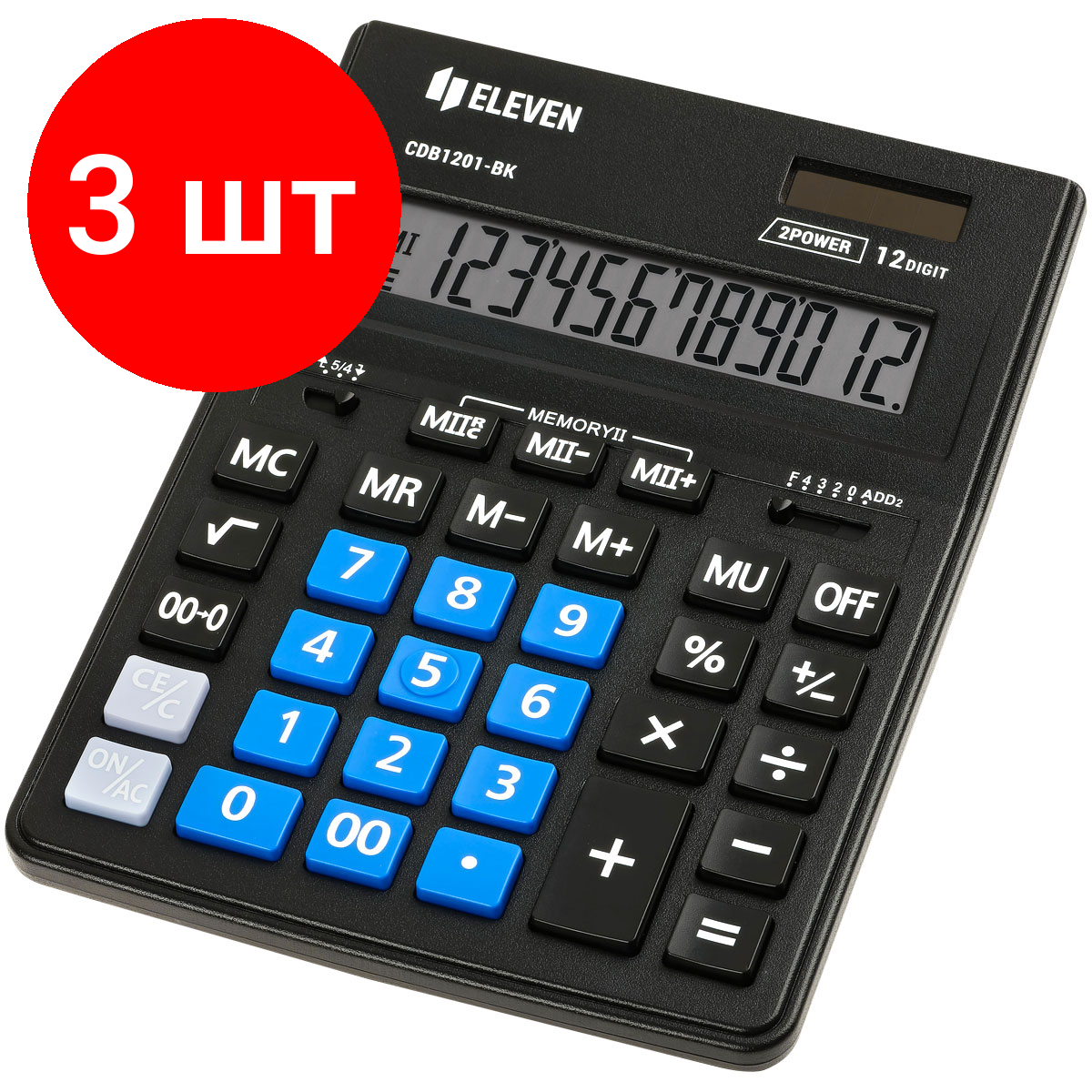 Комплект 3 шт, Калькулятор настольный Eleven Business Line CDB1201-BK/BL, 12 разрядов, двойное питание, 155*205*35мм, черный/синий интересное: