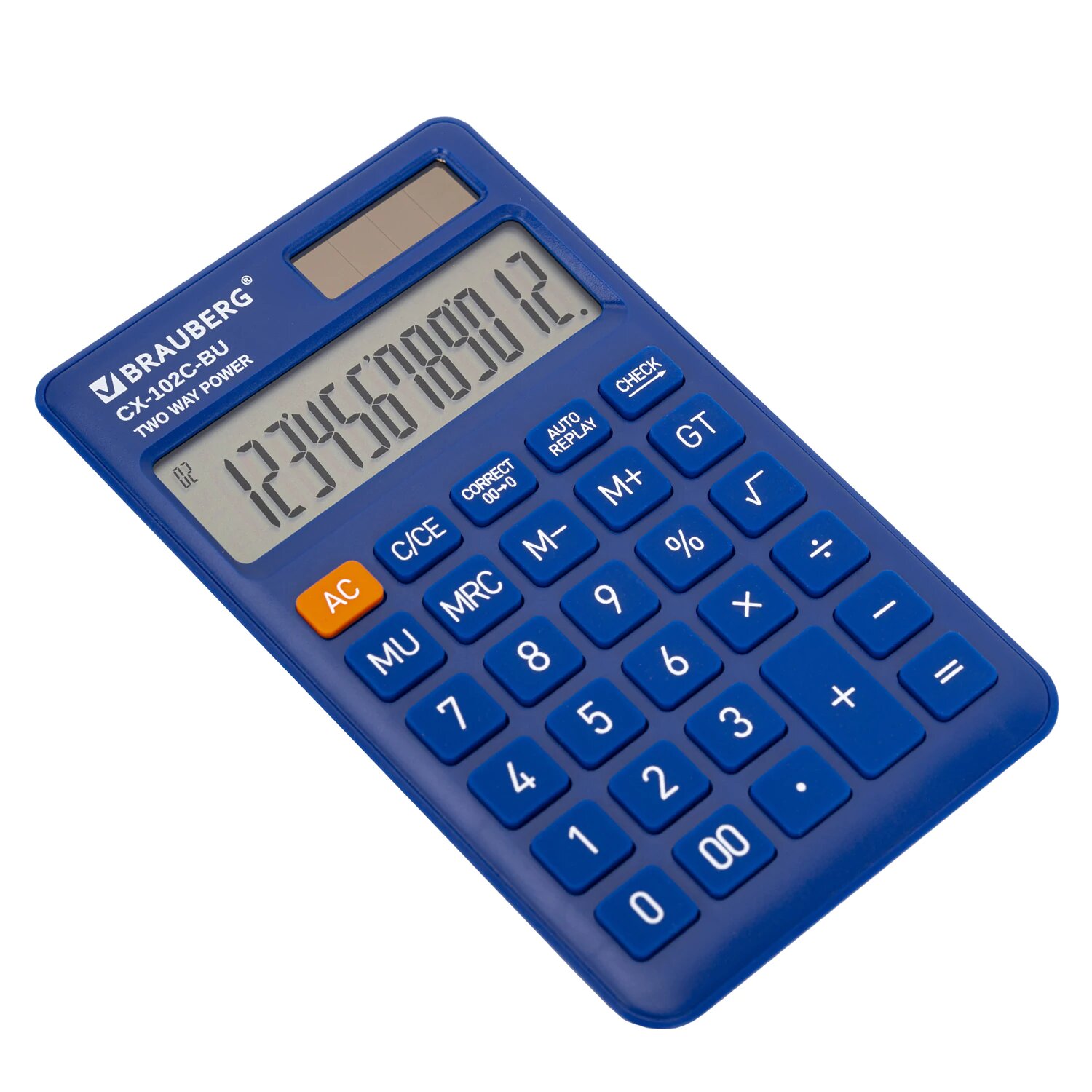 Калькулятор карманный маленький мини для школы и офиса, бухгалтерский 12 разрядов, 76x126 мм, двойное питание, синий, Brauberg CX-102C-BU, 272648 интересное: