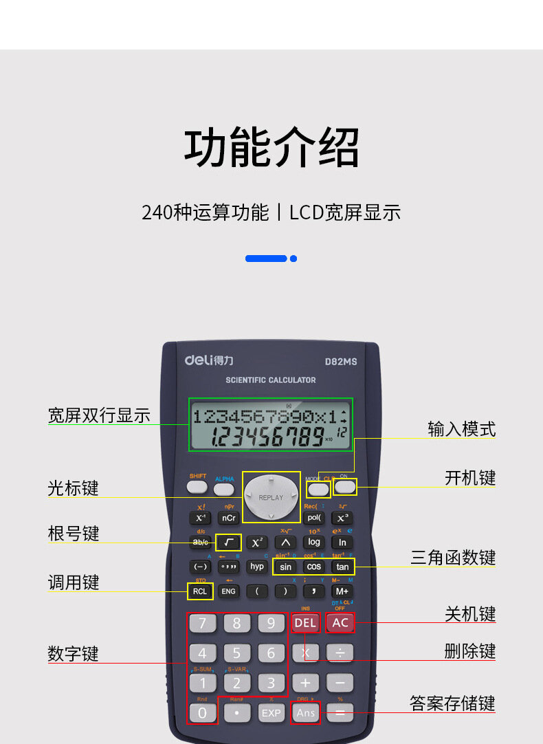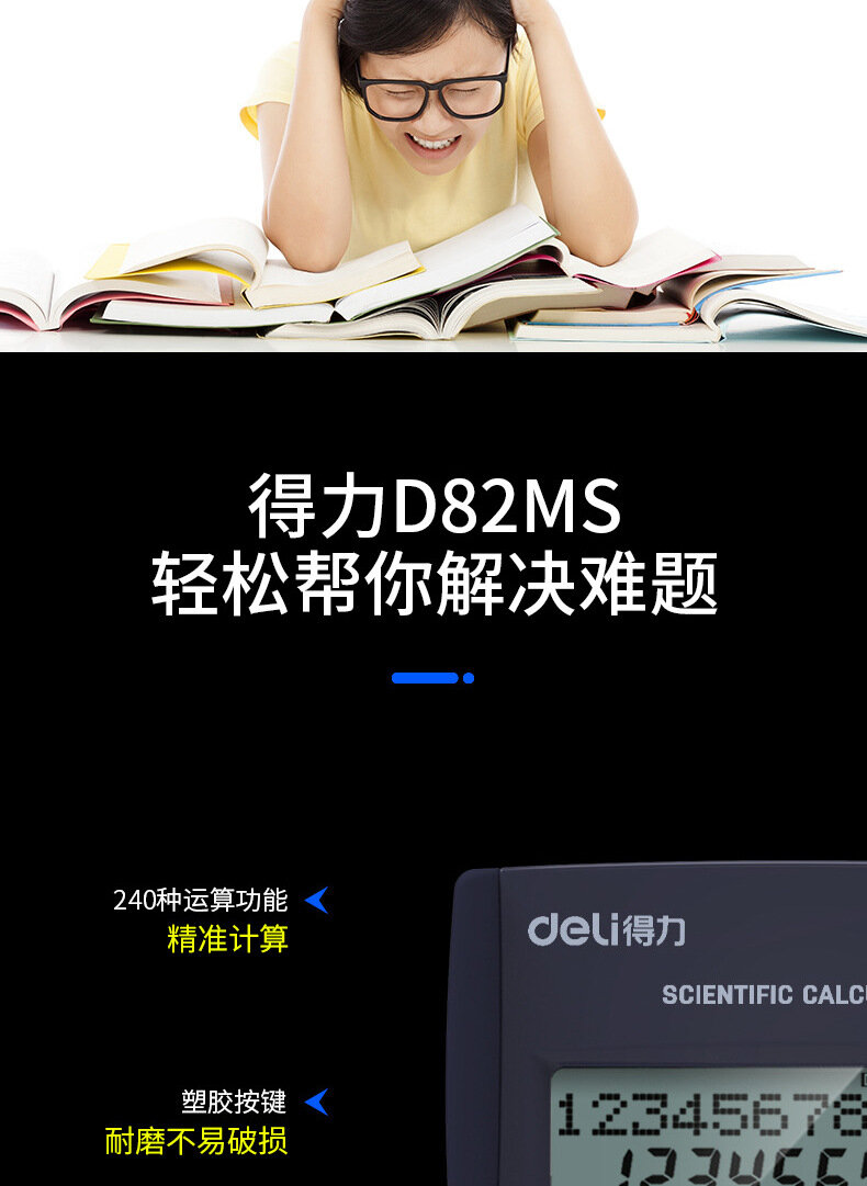 Купить Научный калькулятор Deli D82MS, для аудиторных экзаменов, 12 разрядов, темно-синий