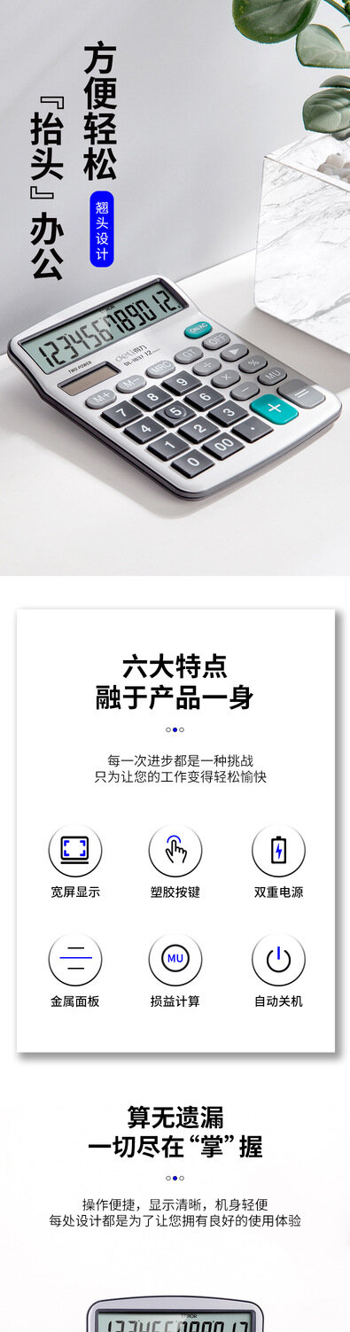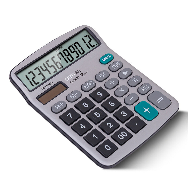Купить Калькулятор Deli 1837, двойной мощности, на солнечной панели, металлический, с большим экраном