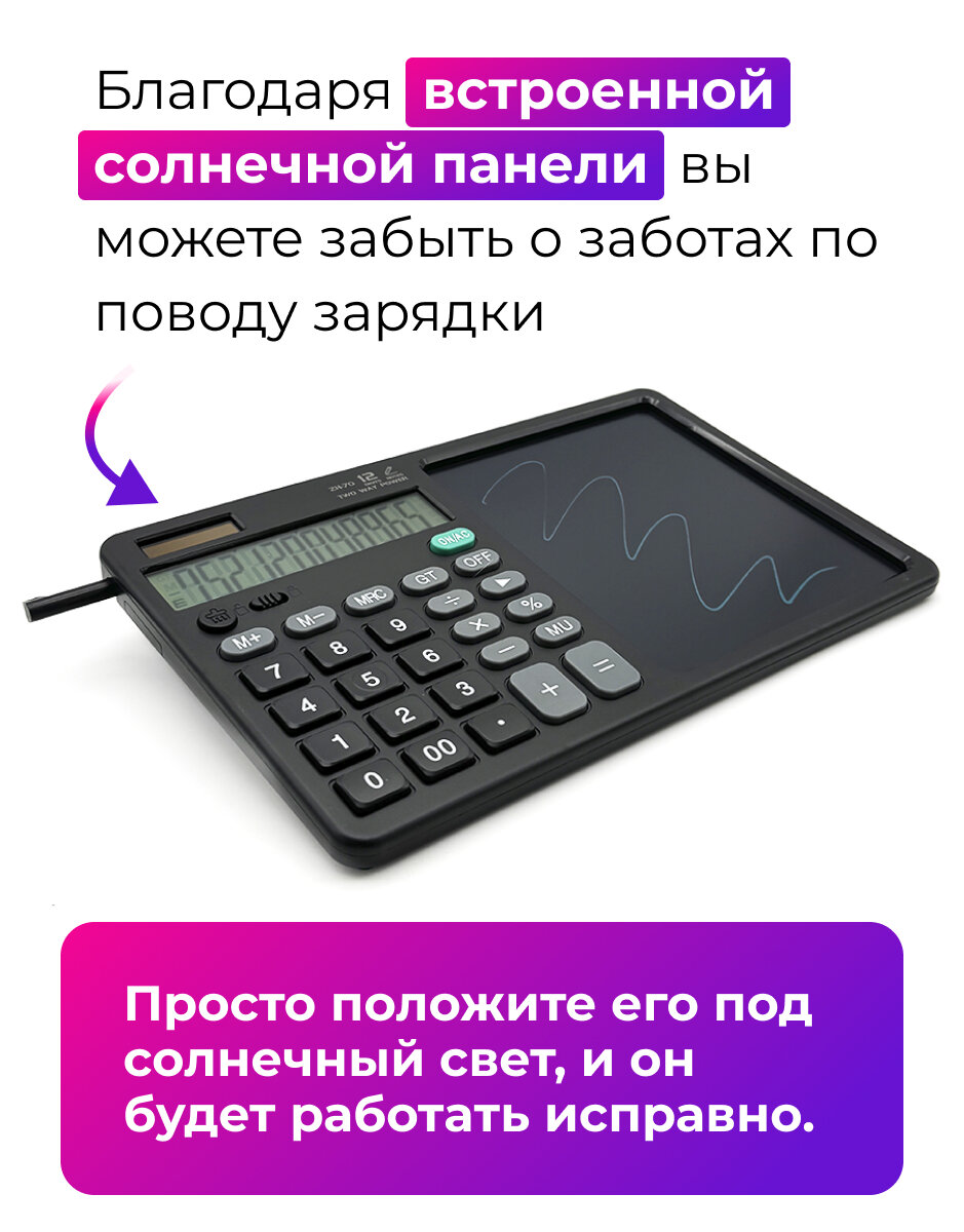 Калькулятор с планшетом черный Calculation With Notepad ZH-70 Black интересное: