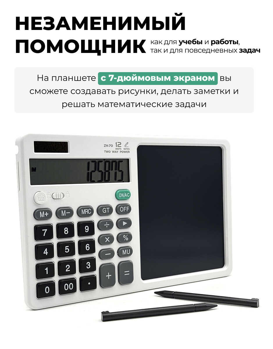 Калькулятор с планшетом белый Calculation With Notepad ZH-70 White интересное: