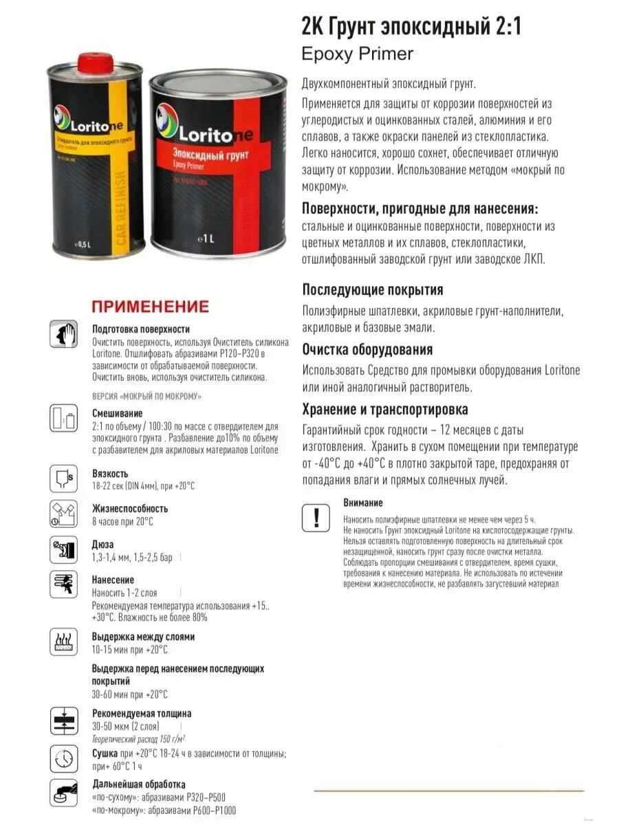 Ниже Вы можете прочитать отзывы на Эпоксидный грунт антикоррозийный акриловый 2K Loritone серый, комплект с отвердителем 1л + 0,5л, ознакомится с подробными характеристиками, посмотреть интересные обзоры и фотографии на Эпоксидный грунт антикоррозийный акриловый 2K Loritone серый, комплект с отвердителем 1л + 0,5л.