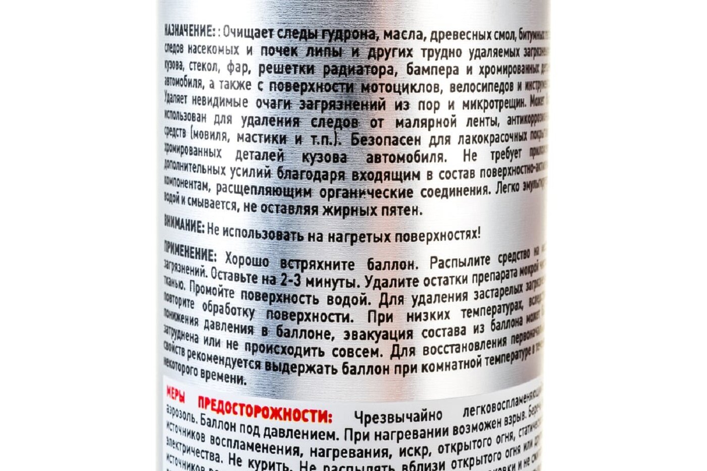 | Способ применения | хорошо взболтайте флакон; распылите препарат на места загрязнений; оставьте на 1-2 минуты; удалите остатки препарата мокрой чистой тканью; промойте поверхность водой; для удаления застарелых загрязнений повторите обработку поверхности |