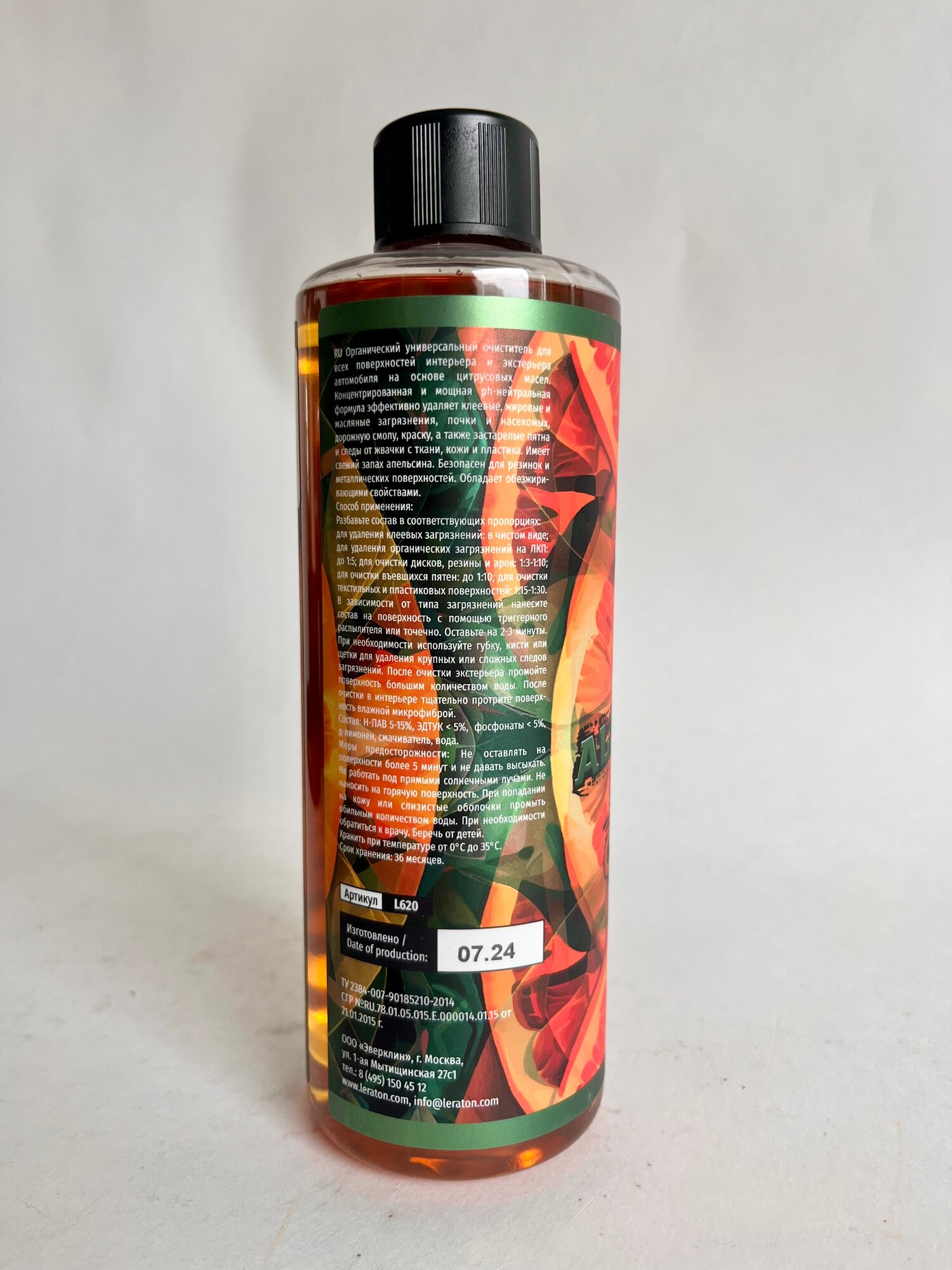 | Дополнительная информация | - для удаления органических загрязнений на ЛКП: до 1:5; - для очистки дисков, резинок и арок: 1:3-1:10; - для очистки въевшихся пятен на ткани 1:10; - для очистки текстильных и пластиковых поверхностей: 1:15-1:30 |