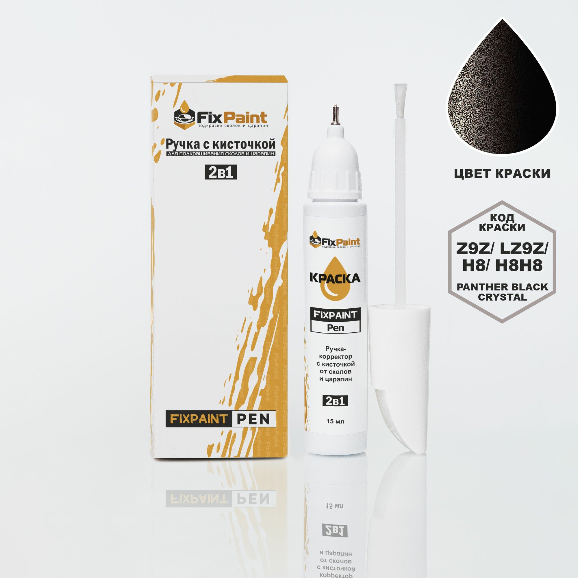 Подкраска AUDI Q5, SQ5, код LZ9Z, H8H8, PANTHER BLACK CRYSTAL, ручка-корректор с кисточкой 2 в 1 FixPaint Pen 15 мл, эмаль для ремонта сколов и царапин