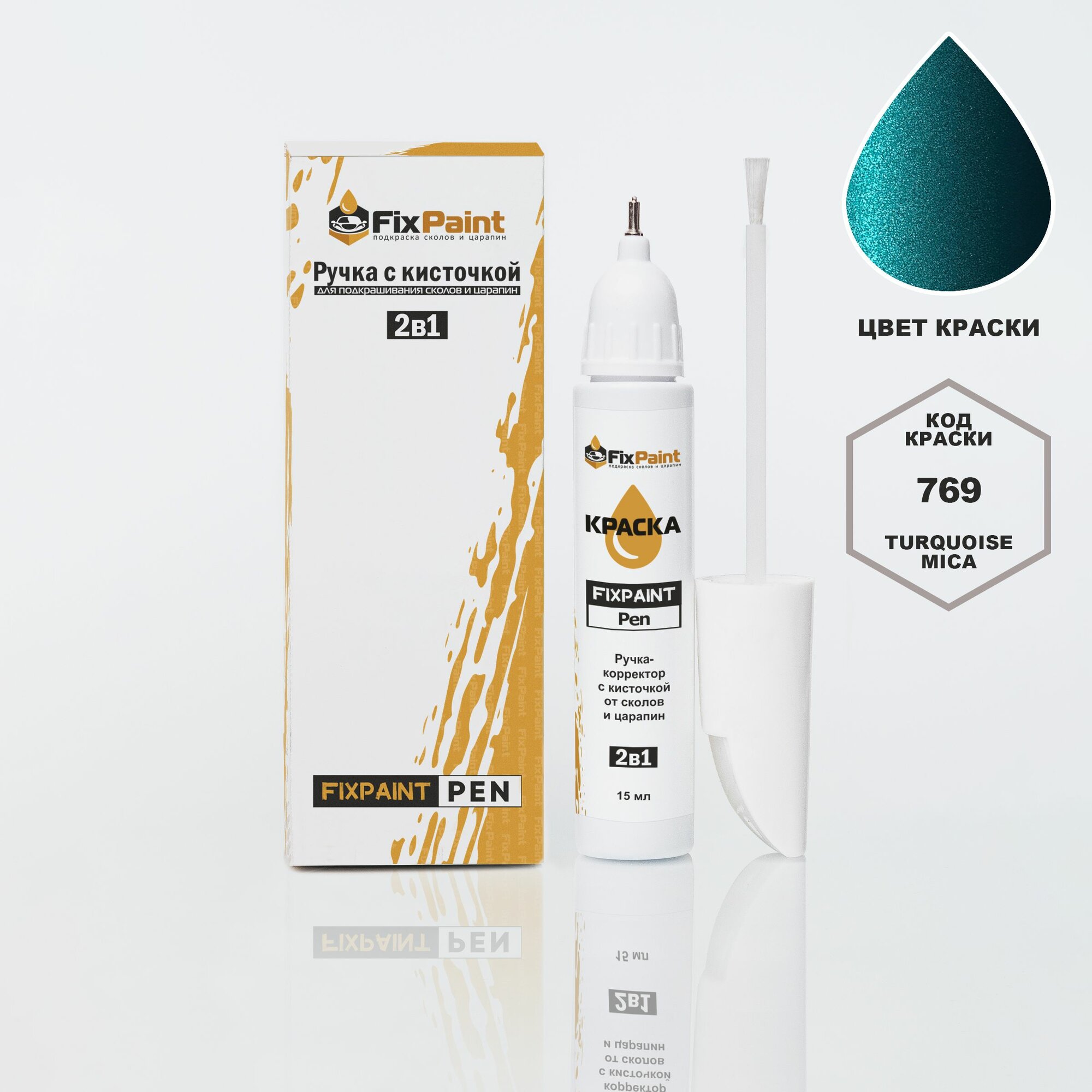 Купить Подкраска AUDI Q5, код 769, TURQUOISE MICA, ручка-корректор с кисточкой 2 в 1 FixPaint Pen 15 мл, эмаль для ремонта сколов и царапин
