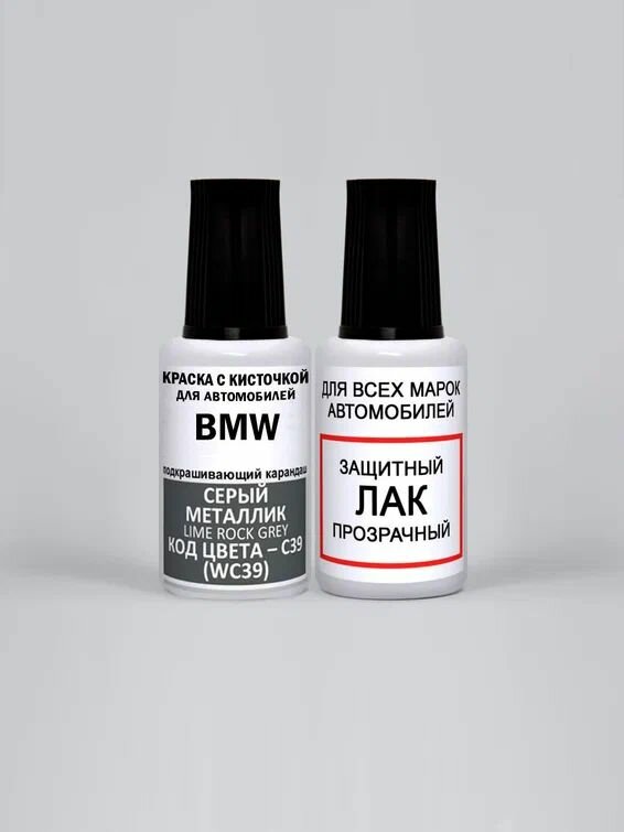 Купить Краска для сколов во флаконе с кисточкой C39 (WC39) BMW Серый металлик, Lime Rock Grey 20 мл, краска+лак 2 предмета