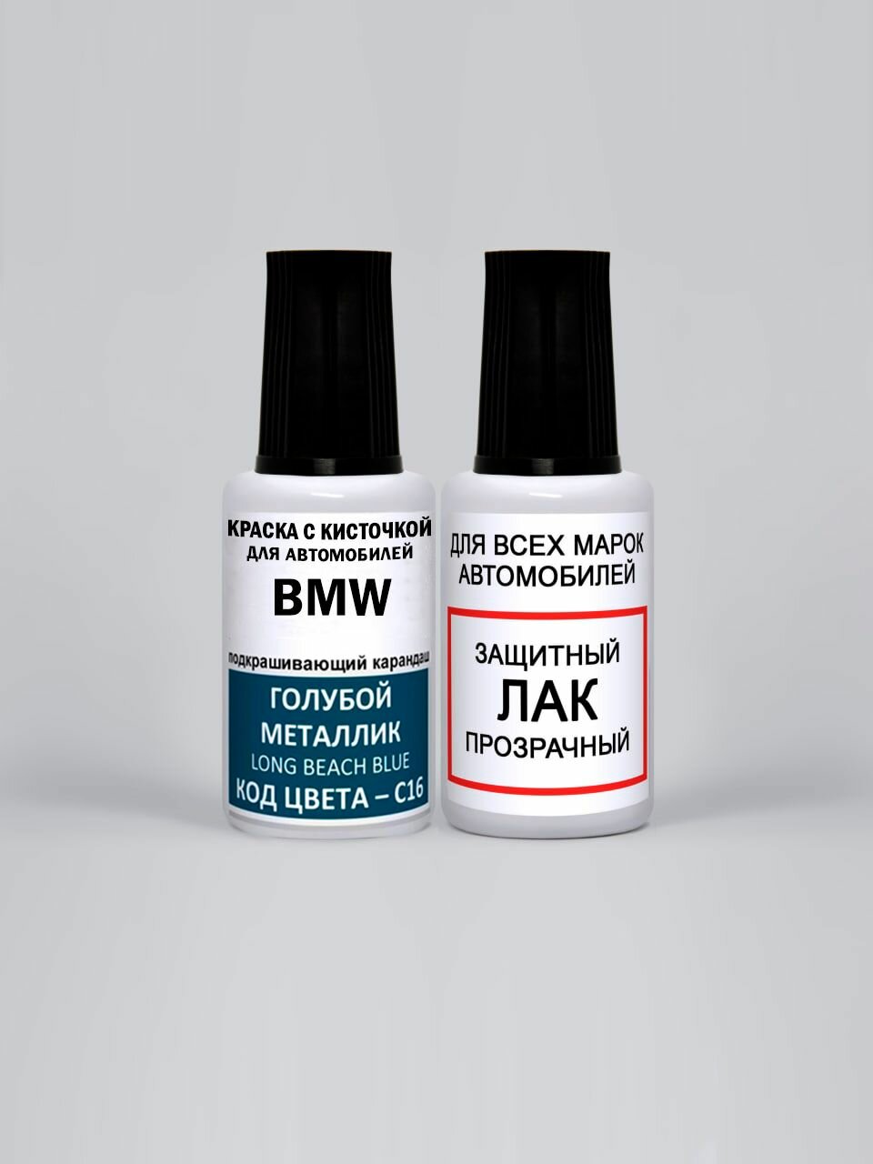 Купить Краска для сколов во флаконе с кисточкой C16 BMW Голубой металлик, Long Beach Blue 20 мл, краска+лак 2 предмета