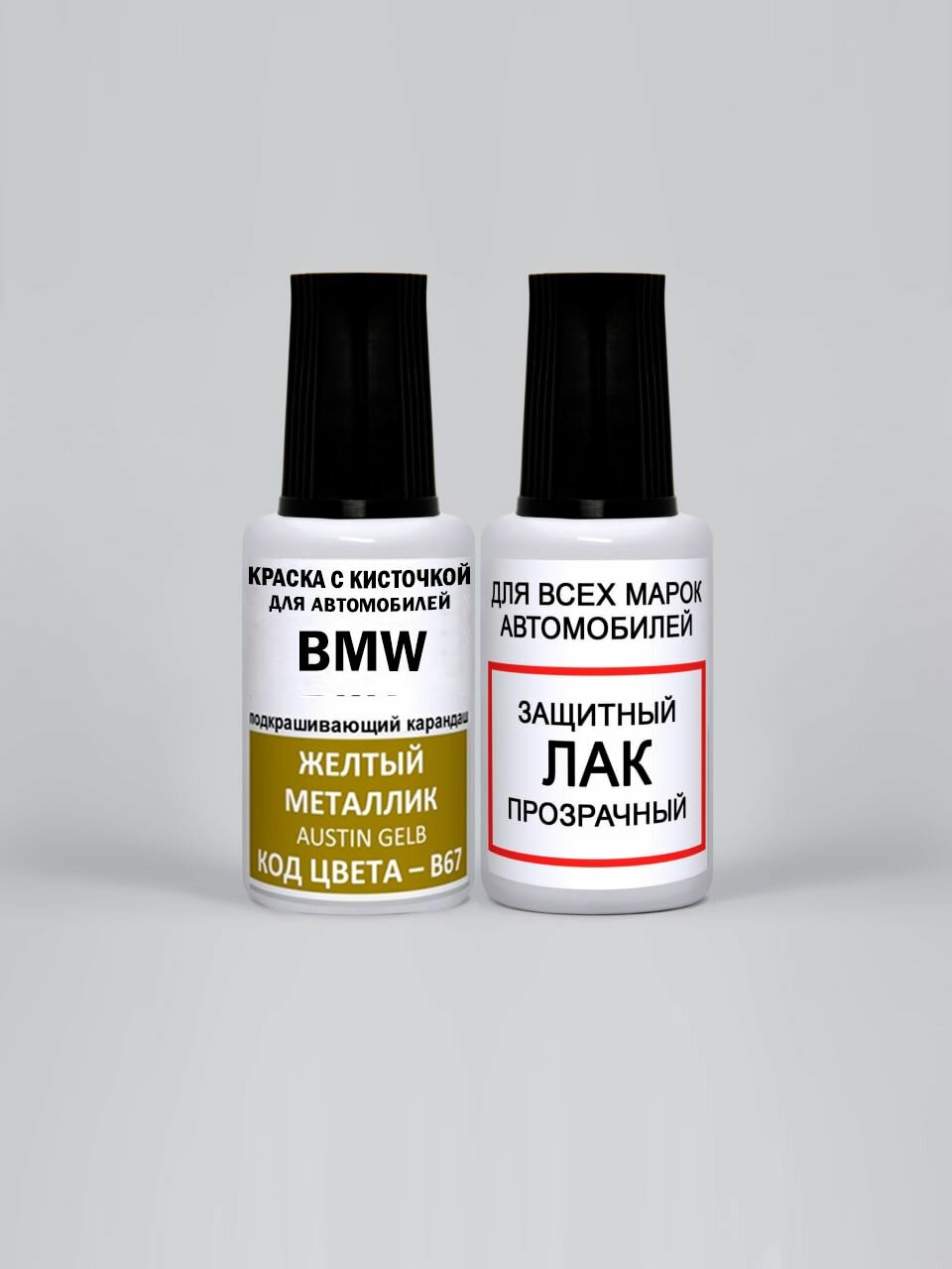 Купить Краска для сколов во флаконе с кисточкой B67 BMW Желтый металлик, Austin Gelb 20 мл, краска+лак 2 предмета
