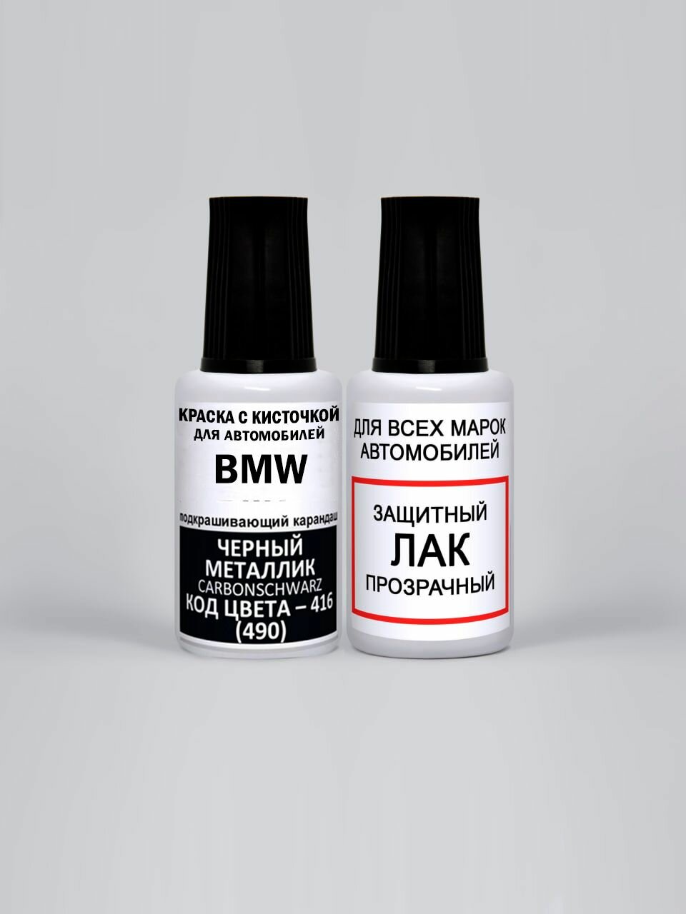 Купить Краска для сколов во флаконе с кисточкой 416 (490) BMW Темно-синий металлик (черный карбон), Carbonschwarz 20 мл, краска+лак 2 предмета