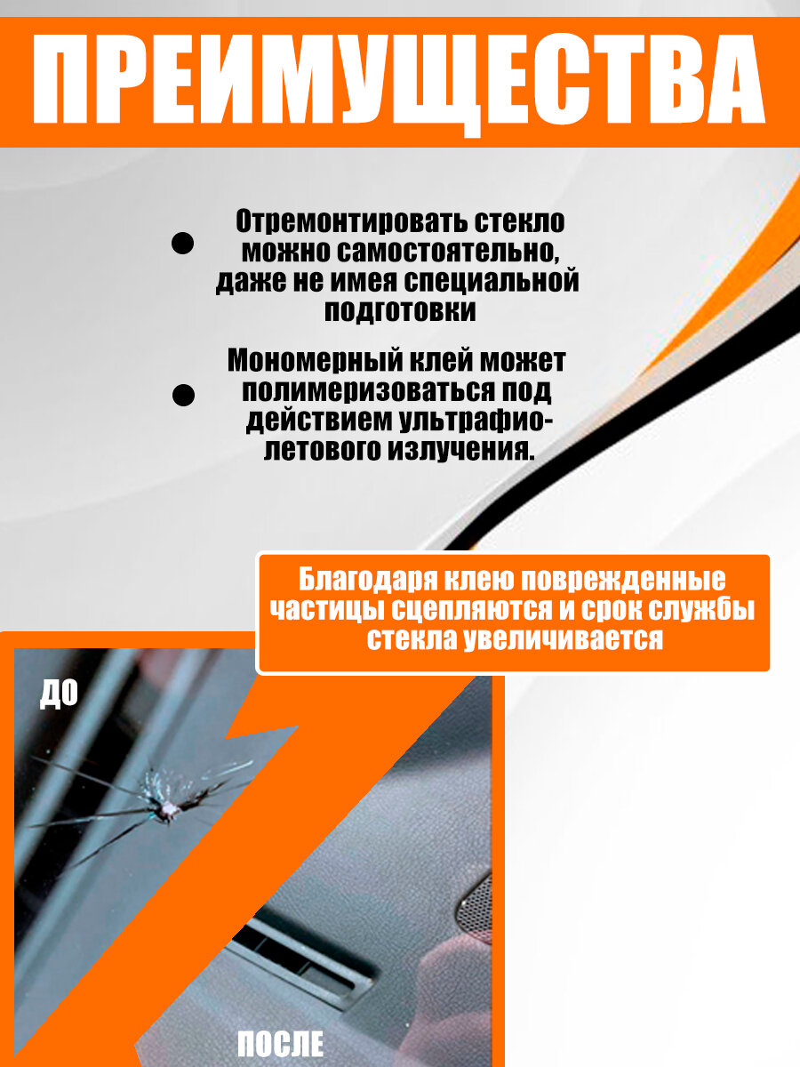 Набор от сколов и трещин на лобовом стекле автомобиля интересное:
