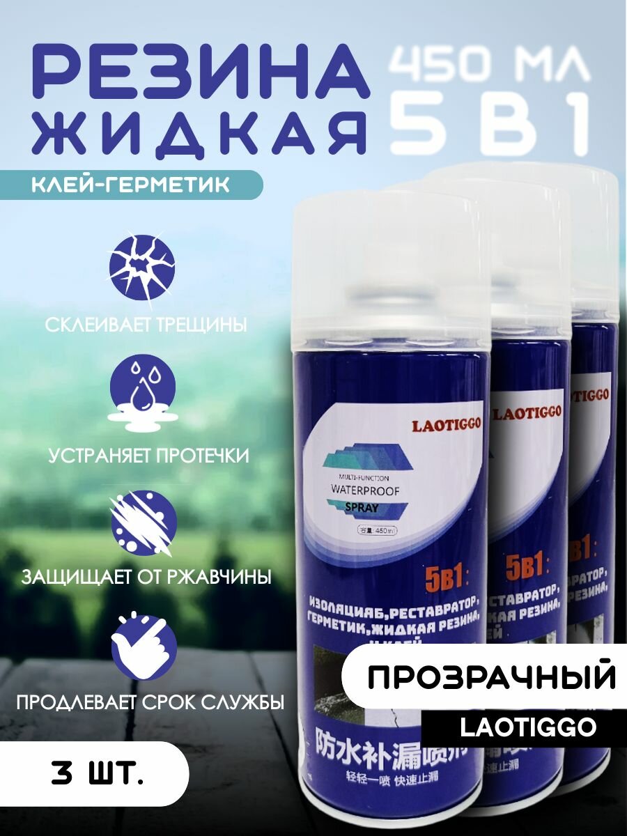 Жидкая резина синий герметик LAOTIGGO 5в1, прозрачный, 3 шт, 450мл, клей строительный интересное: